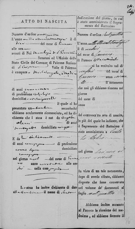 Angela Arceri was born on November 16, 1823 in Santa Cristina, Palermo, Sicilia, Italy. She and