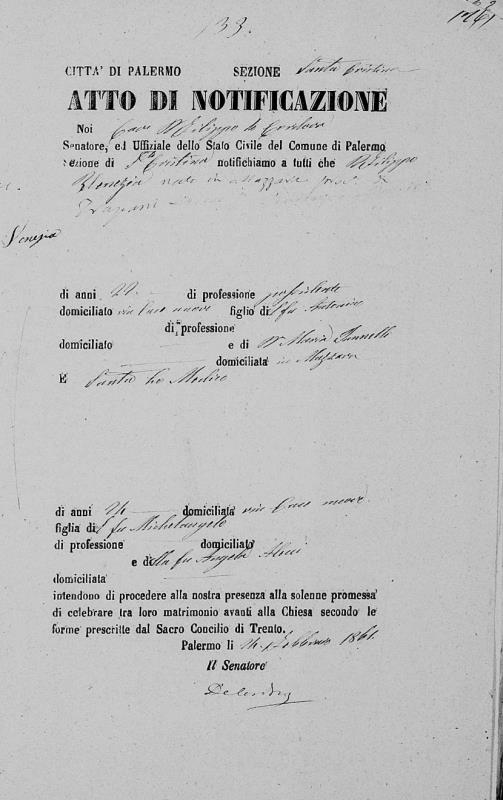 Filippo Venezia were married on March 26, 1861 in Santa Cristina, Palermo, Sicilia, Italy. She died.