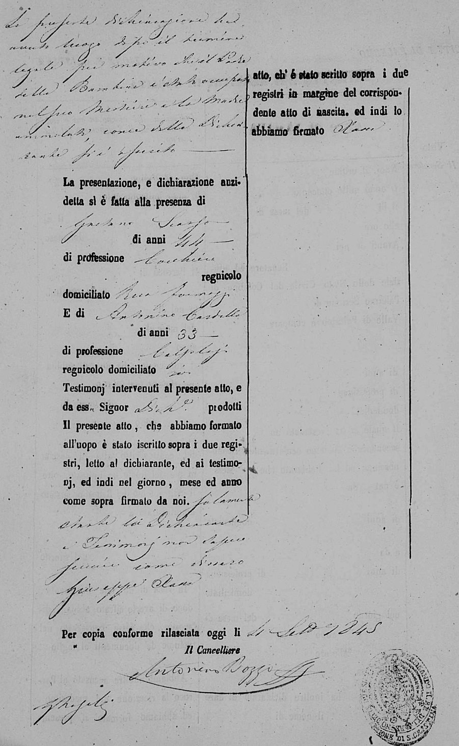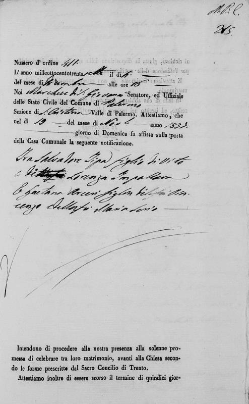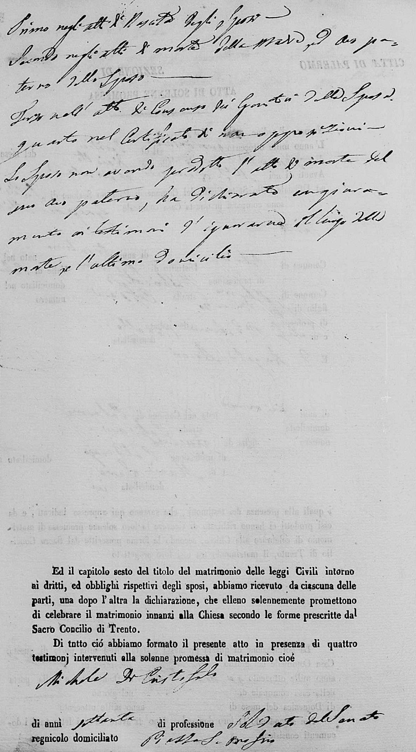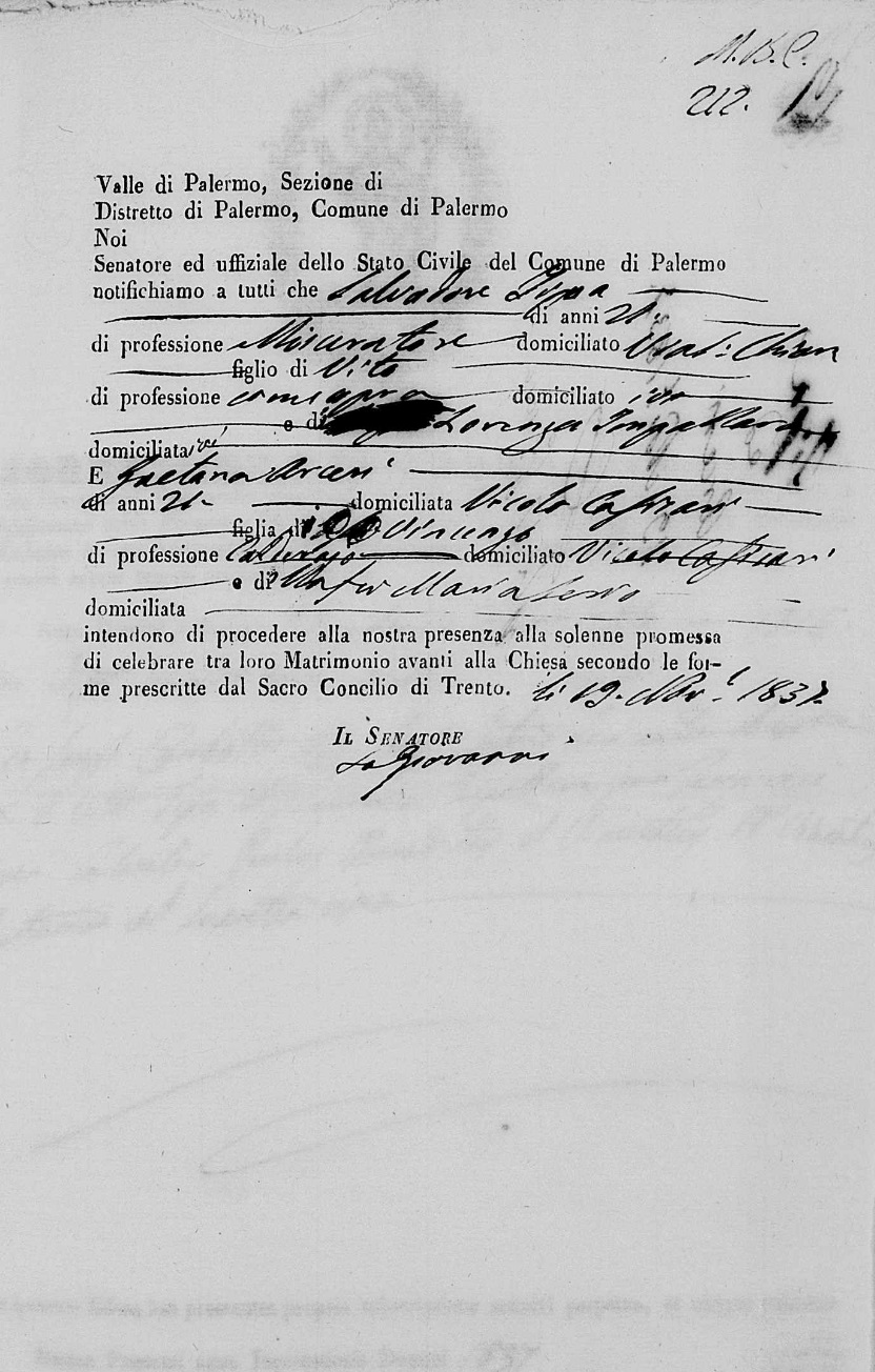 Gaetana Arceri were married on January 18, 1838 in Santa Cristina, Palermo, Sicilia, Italy. He died.