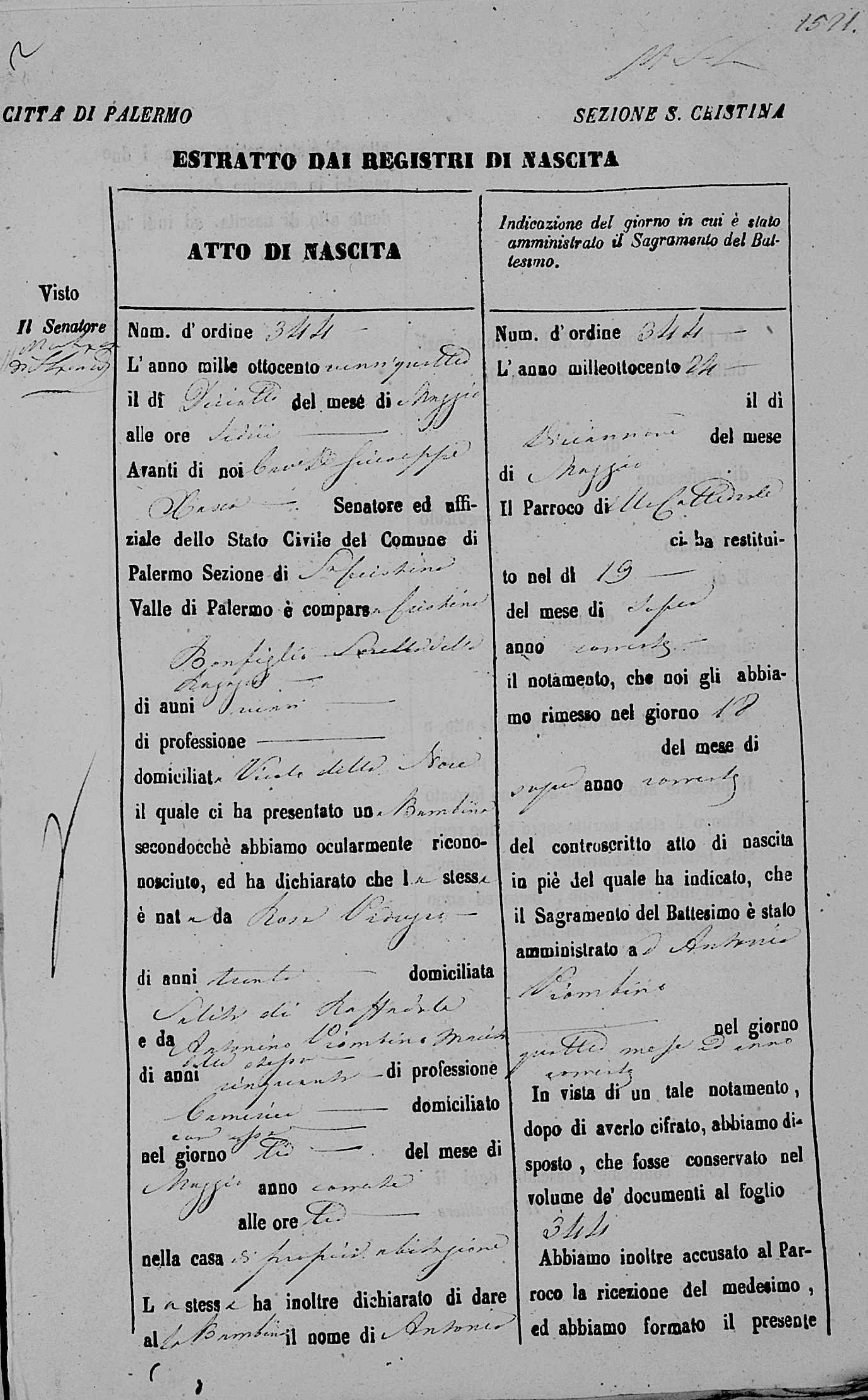 Antonino Piombino was born in 1776 in Palermo, Sicilia, Italy. He and