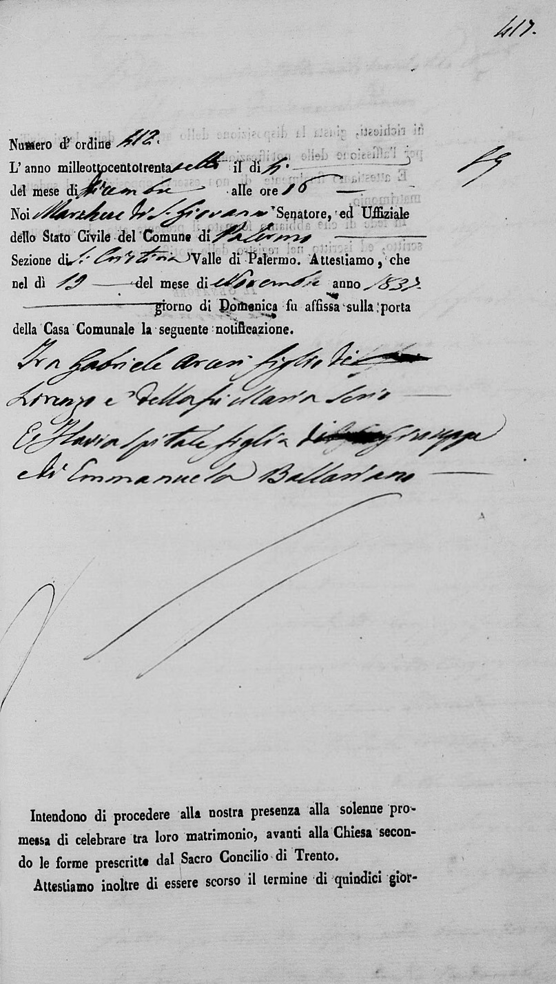 Gabriele Arceri were married on February 4, 1838 in Santa Cristina, Palermo, Sicilia, Italy. She died.
