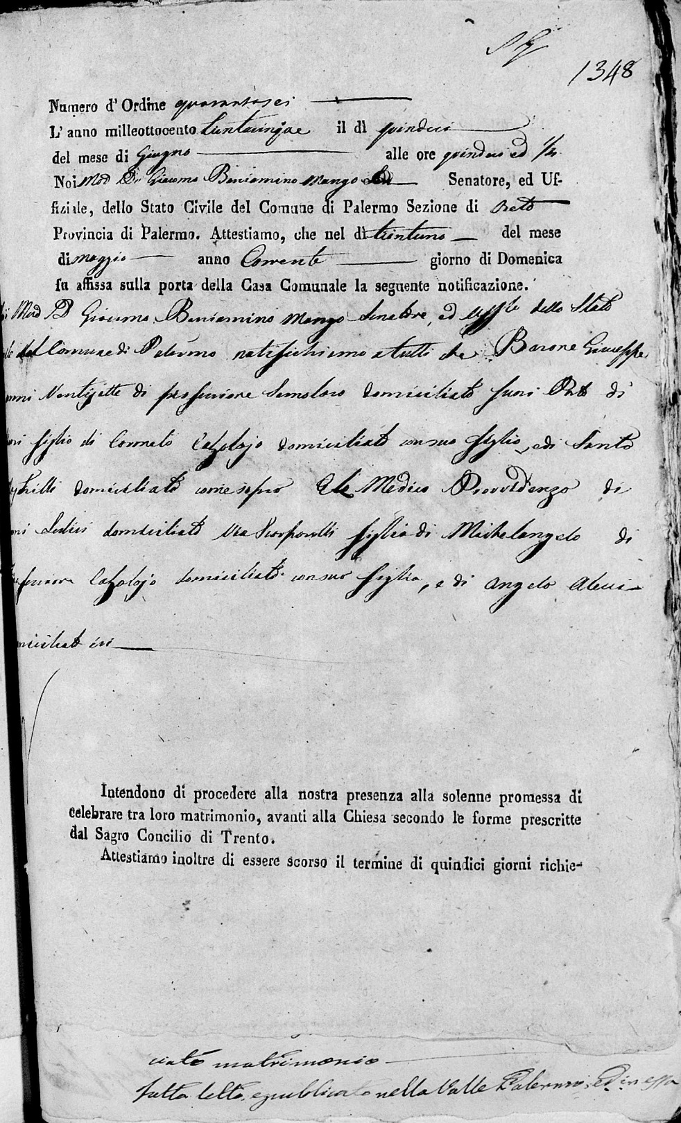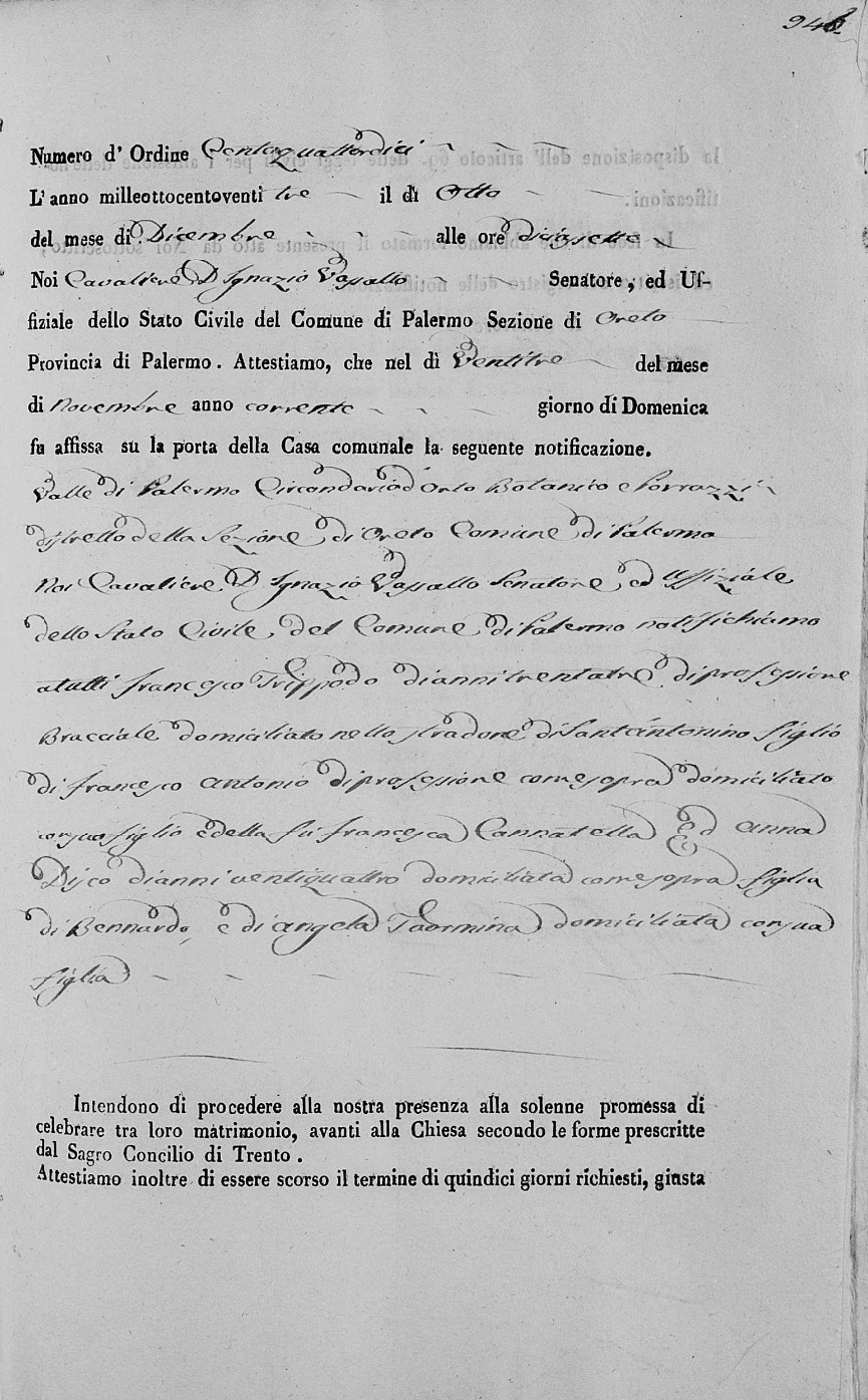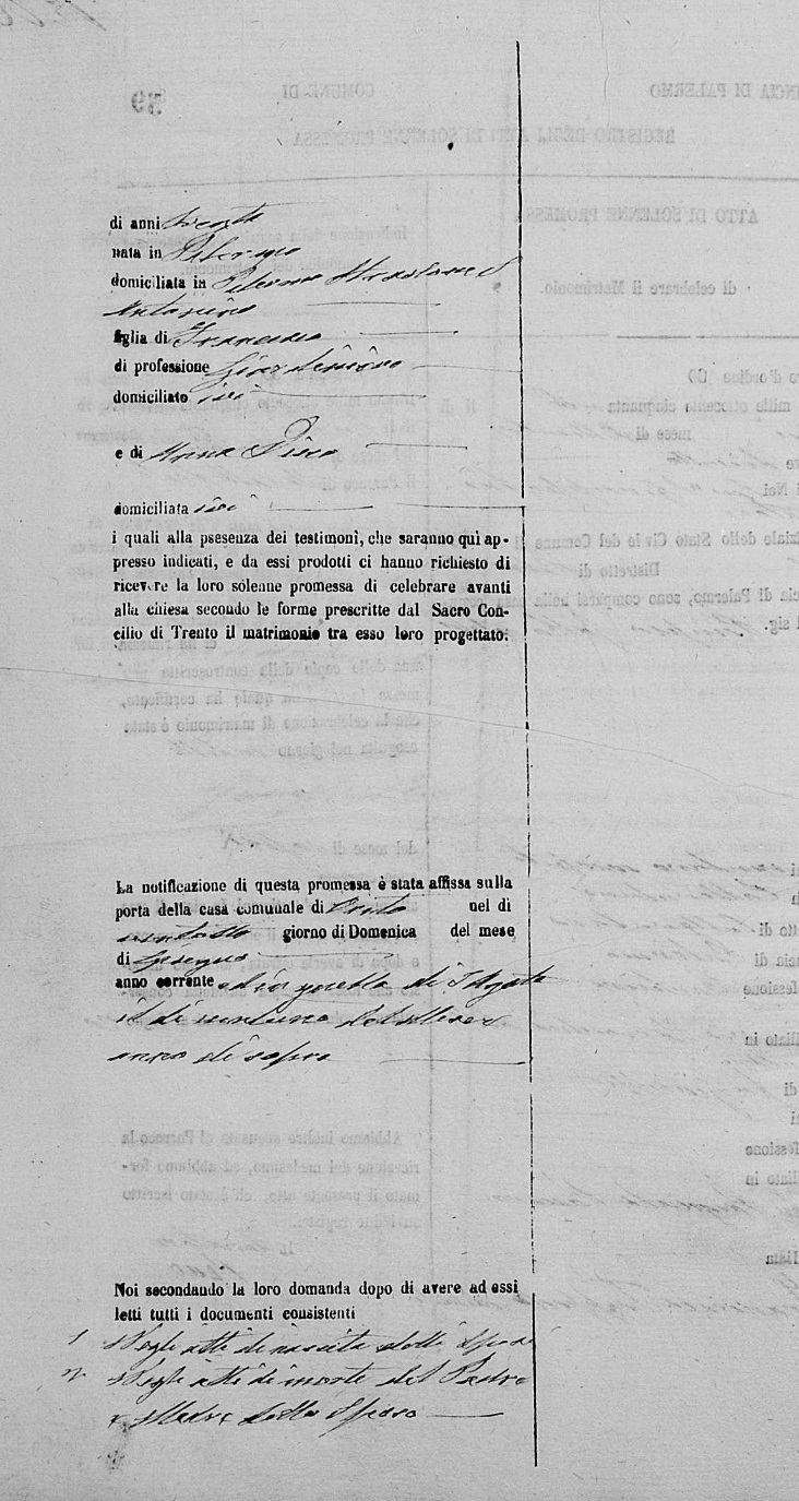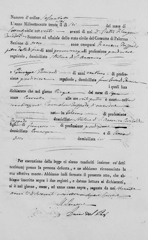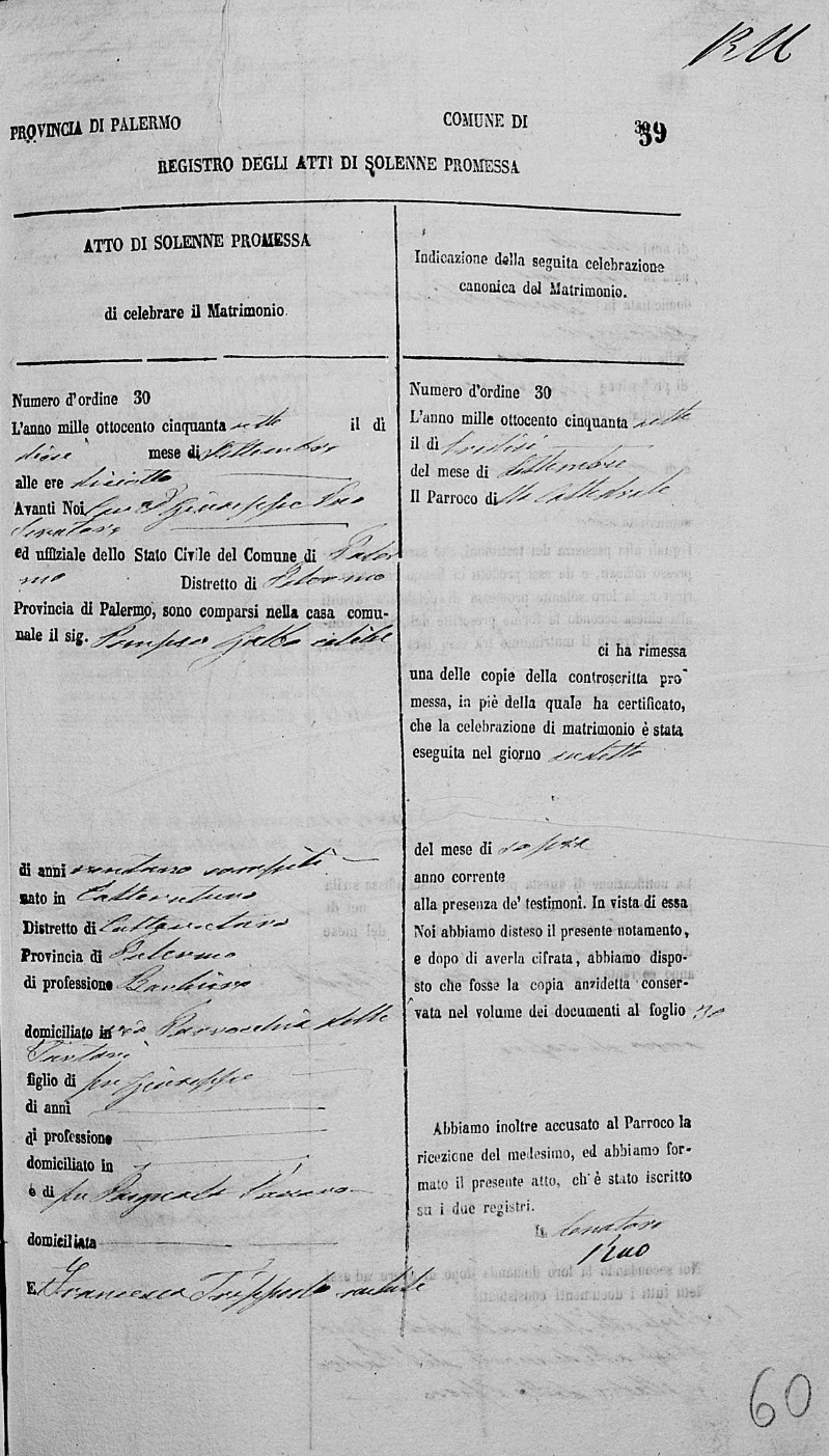 Francesca Grazia Trippodo were married on September 18, 1857 in Oreto, Palermo, Sicilia, Italy. He died.