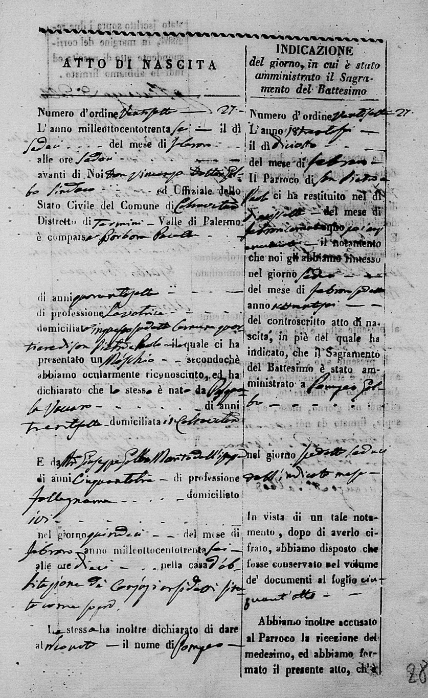 Giuseppe Barone was born on August 4, 1807 in Palermo, Sicilia, Italy. He and