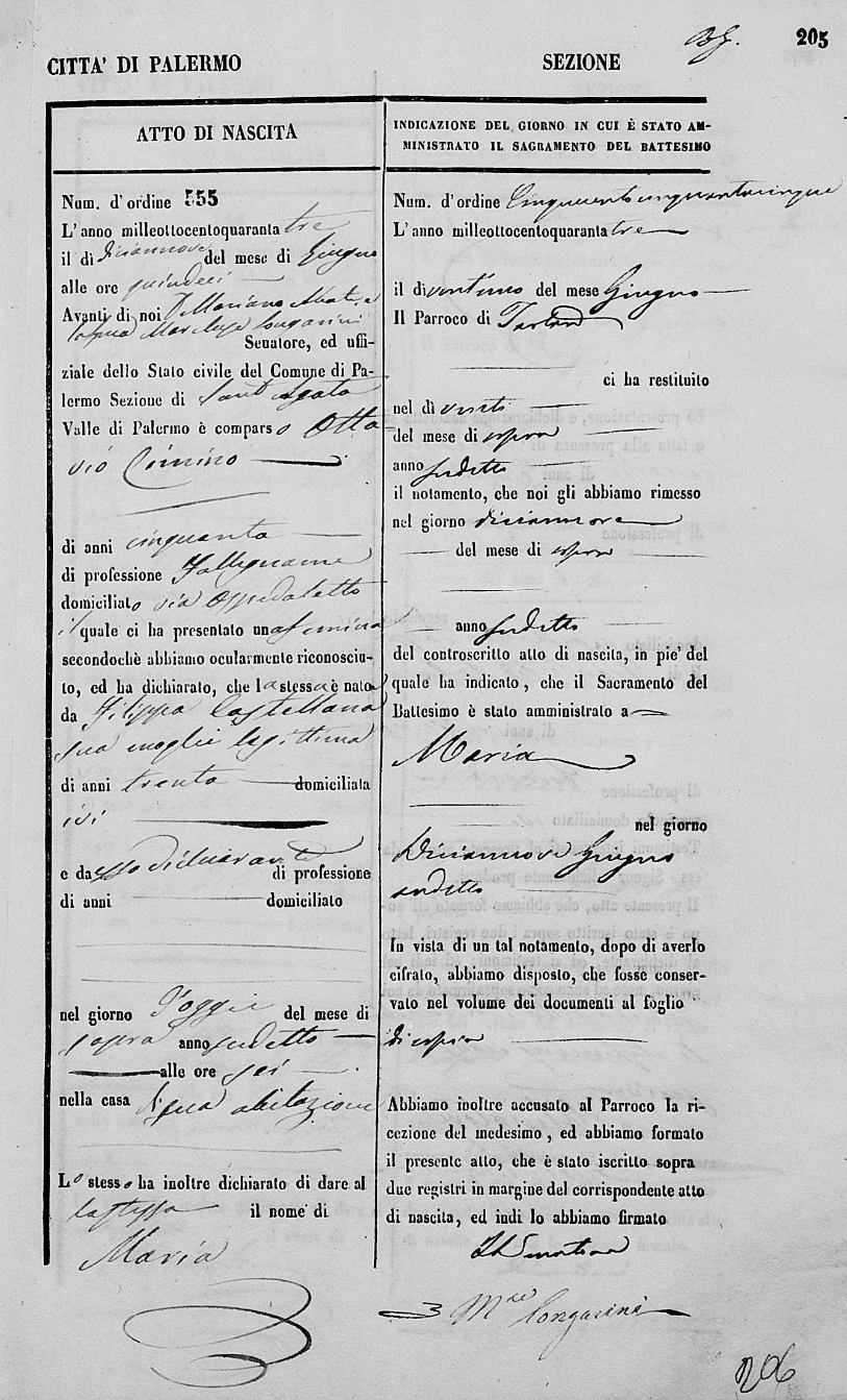 Maria Cimino was born on June 19, 1843 in Sant'Agata, Palermo, Sicilia, Italy. She and