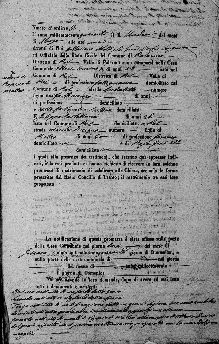 Ottavio Cimino were married on March 13, 1840 in Sant'Agata, Palermo, Sicilia, Italy. She died.
