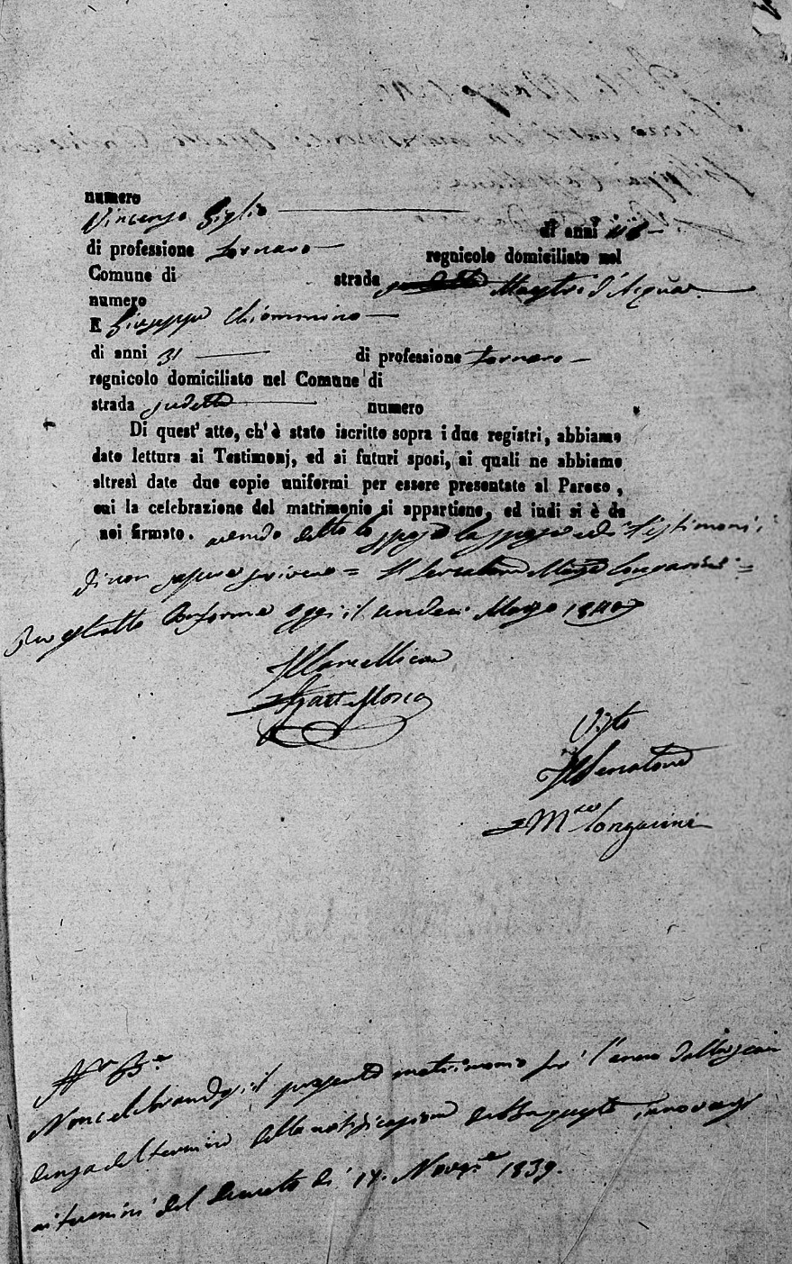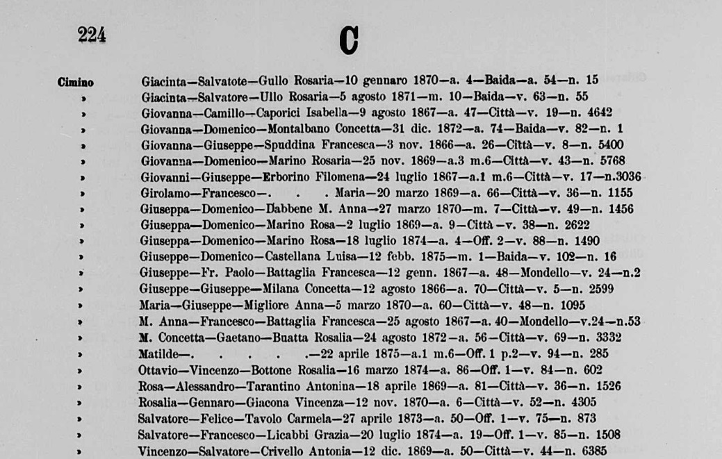 Maria Cimino were married on November 7, 1862 in Palermo, Sicilia, Italy. He died.