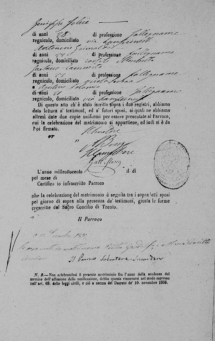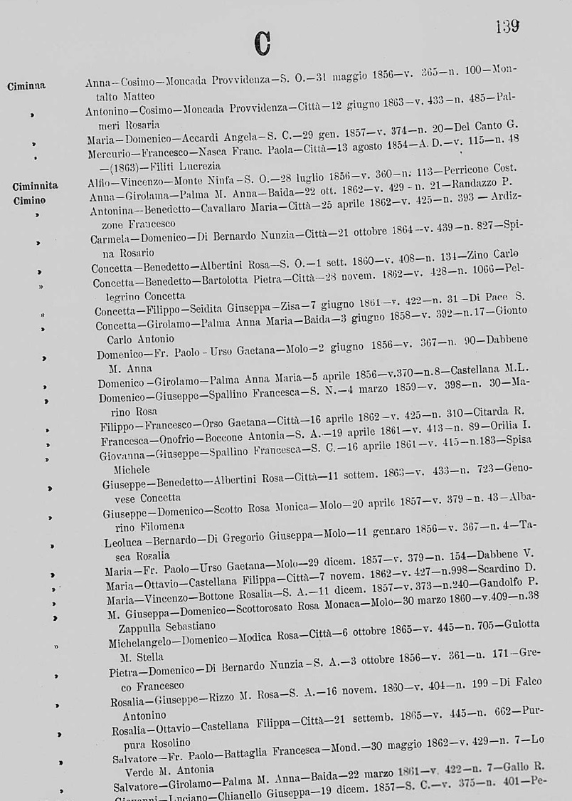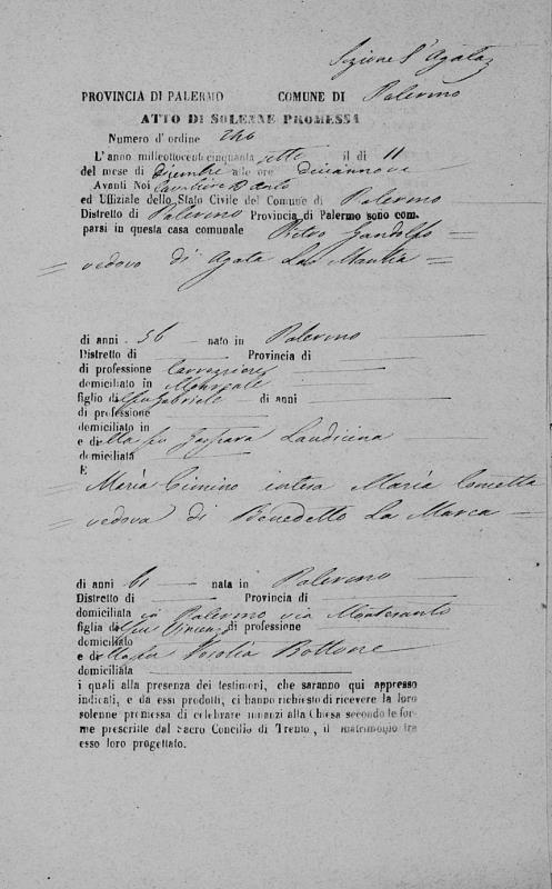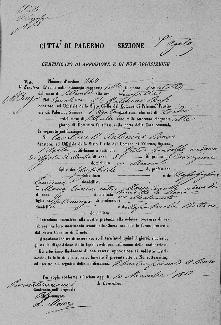 Maria Concetta Cimino were married on December 12, 1857 in Sant'Agata, Palermo, Sicilia, Italy. He died.