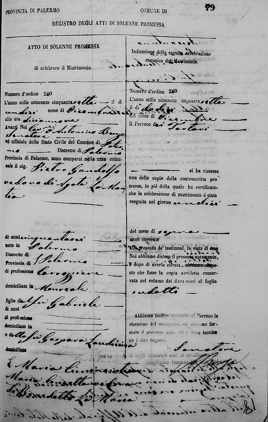 Pietro Gandolfo were married on December 12, 1857 in Sant'Agata, Palermo, Sicilia, Italy. She died.
