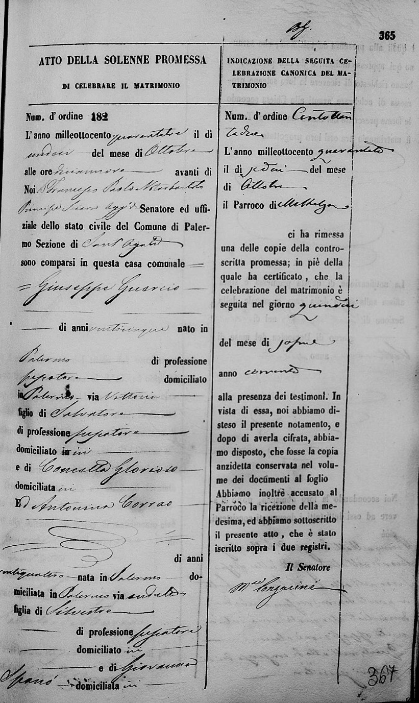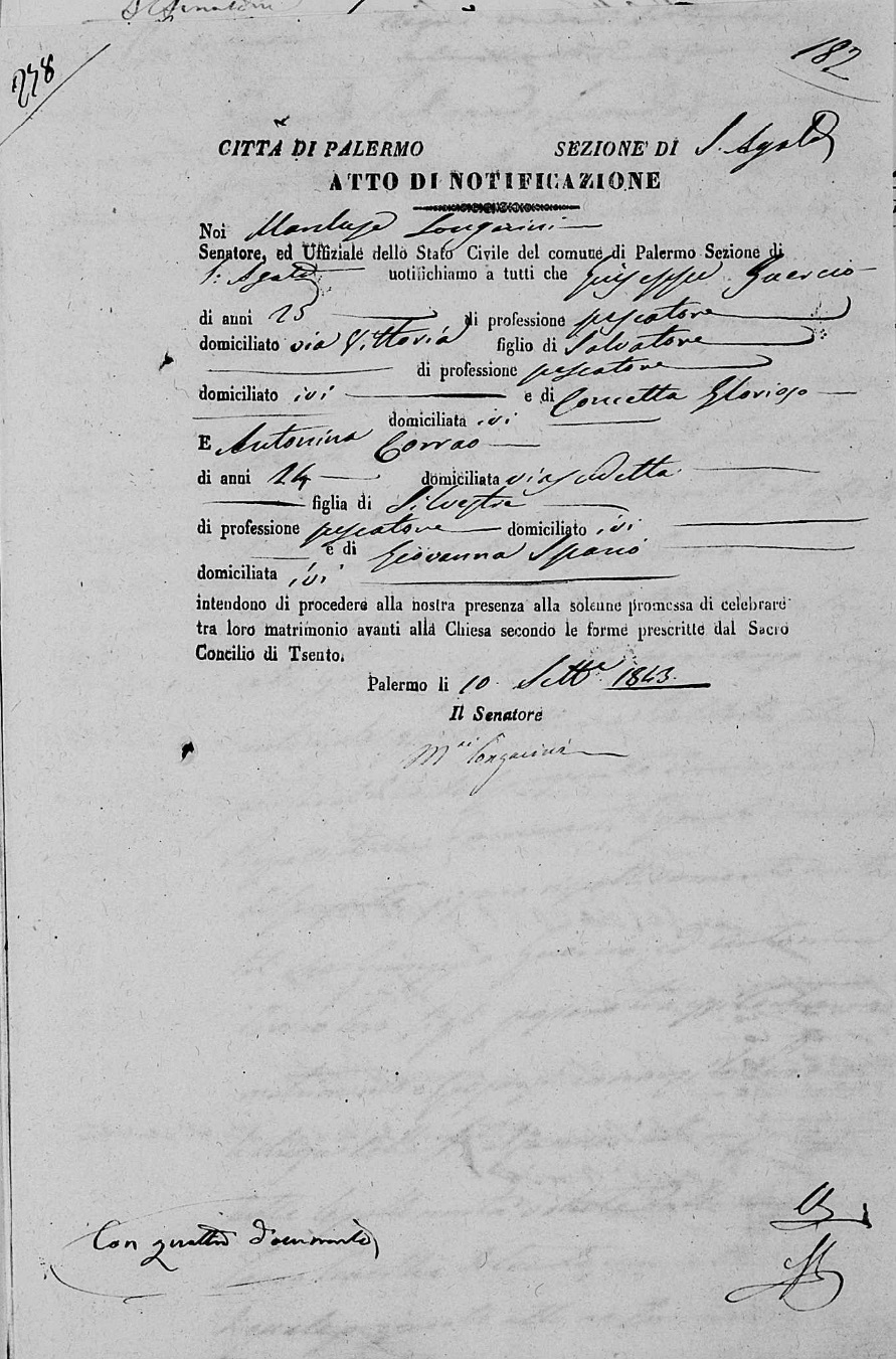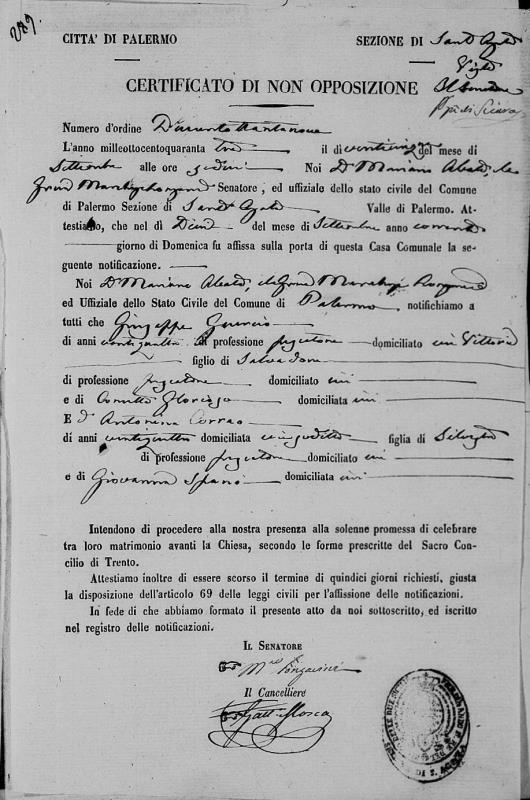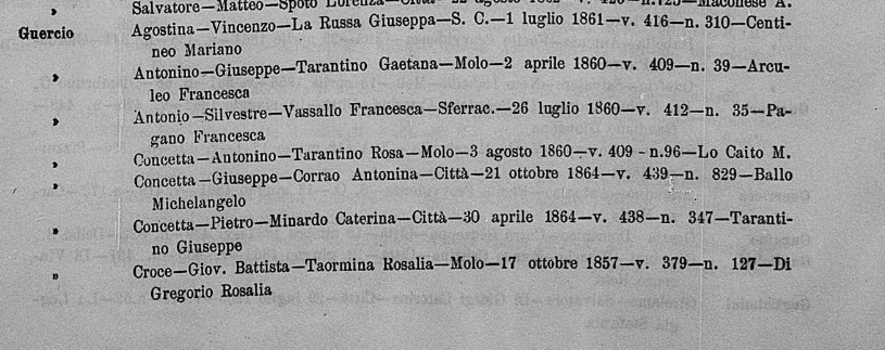 Concetta Guercio were married on October 21, 1864 in Palermo, Sicilia, Italy. He died.