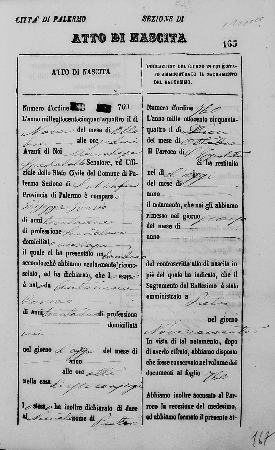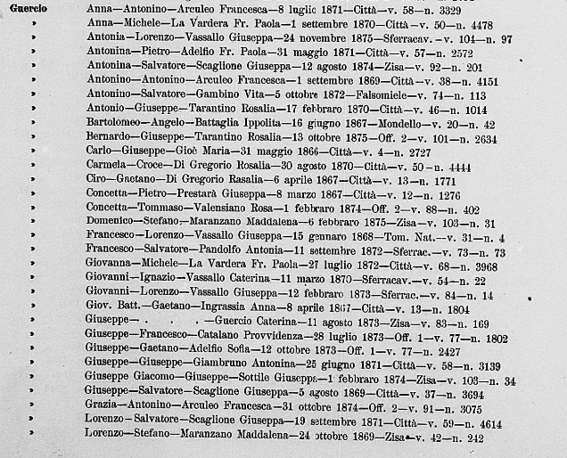 Salvatore Guercio were married on October 29, 1868 in Palermo, Sicilia, Italy. She died.