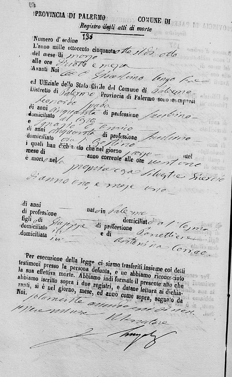 Maria Amalia Gaudiano were married on September 21, 1864 in Palermo, Sicilia, Italy. He died.