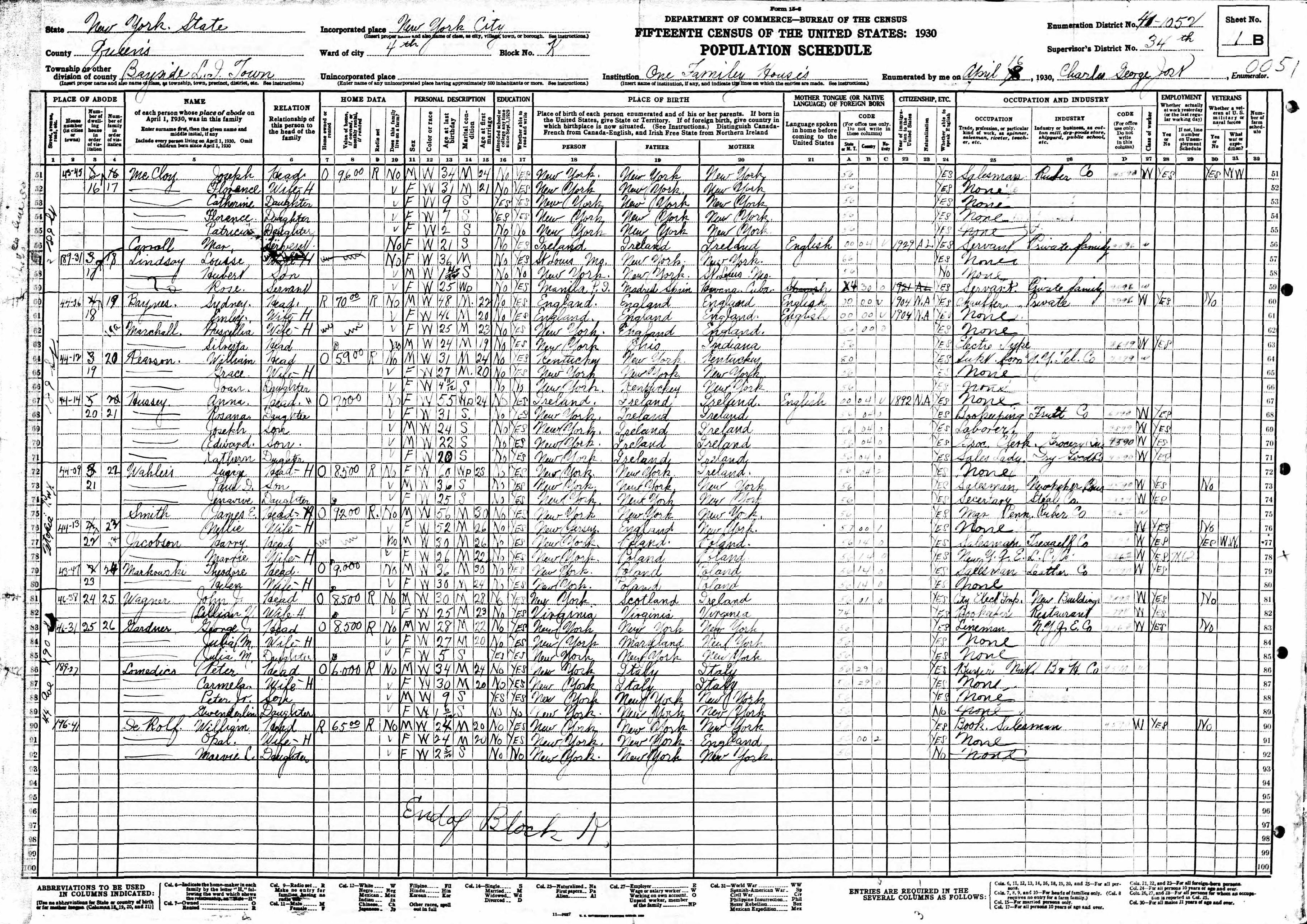 Lomedico Family 1930 Federal Census New York, Lines 86-89