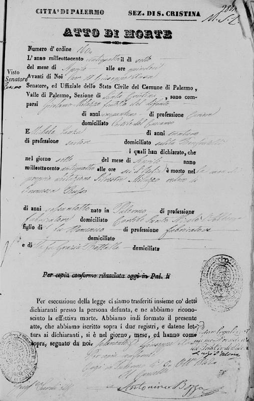 Francesca Russo were married. He died on April 7, 1824, at age ~68, in Santa Cristina, Palermo, Sicilia, Italy.