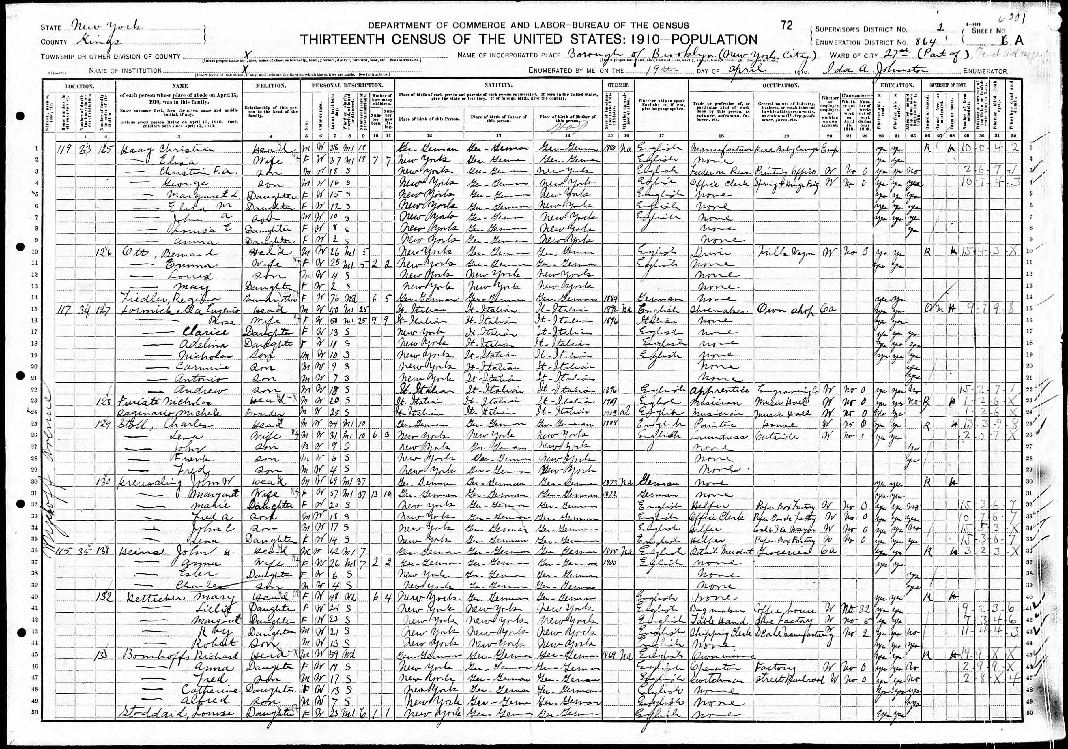 Formichella Family 1910 Federal Census Kings Co. New York, lines 15-22