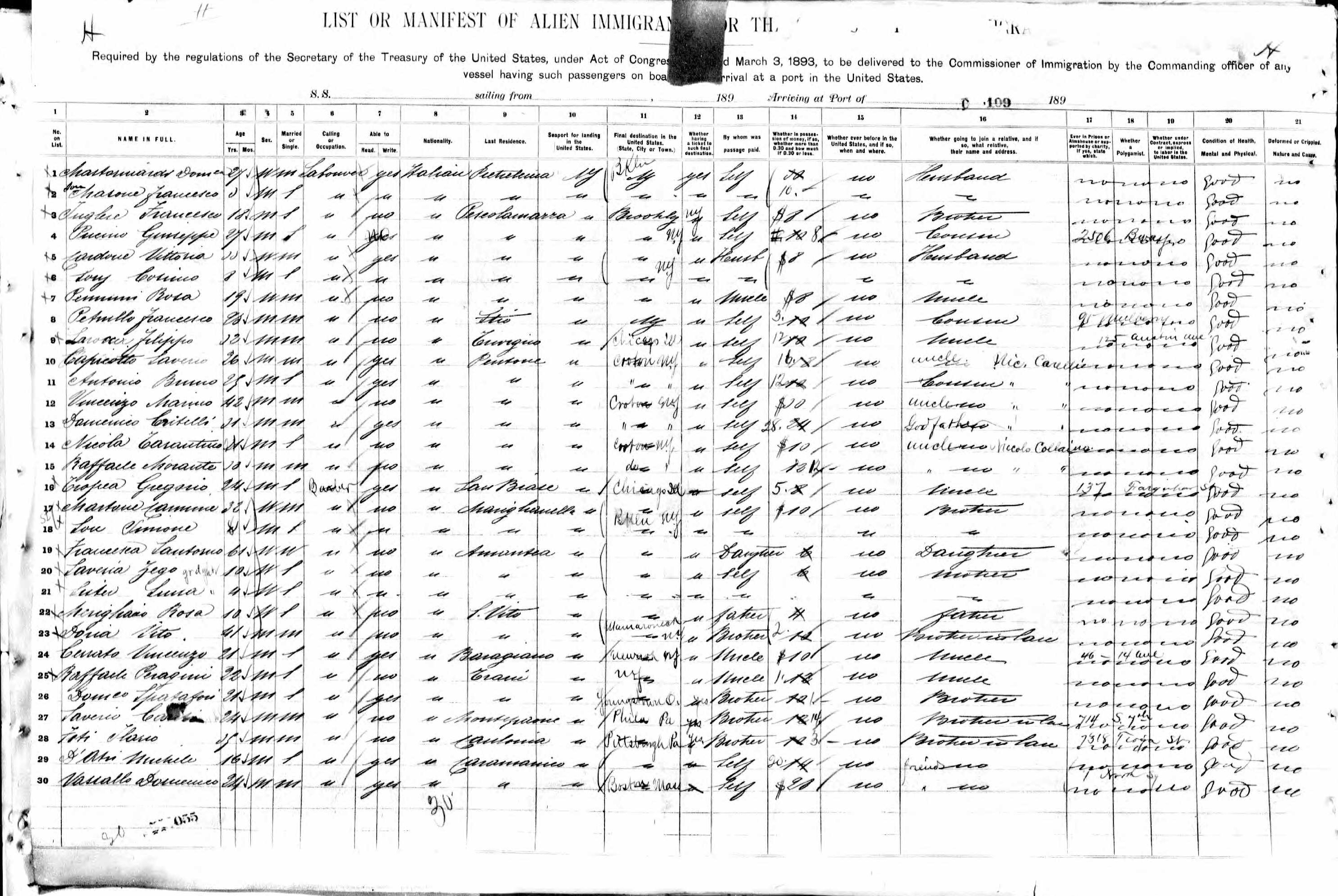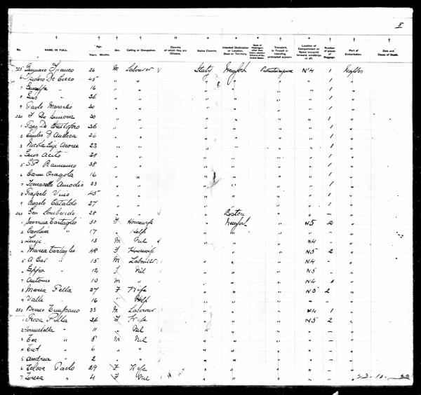 Formichella Family 1896 Ship Departure Manifest, Lines 250.1-5