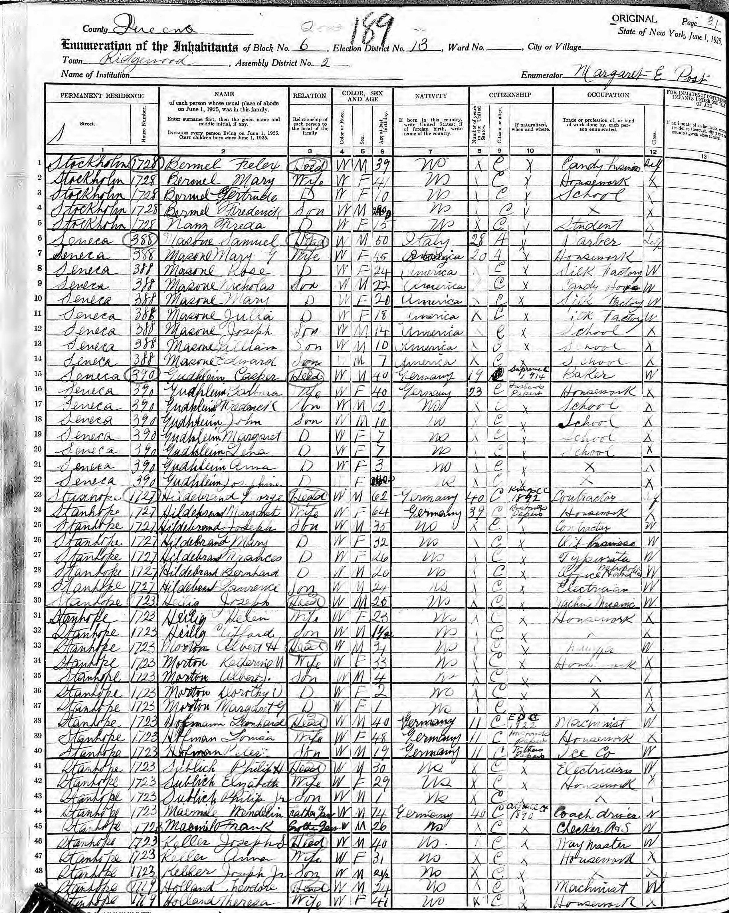 Masone Family 1920 Federal Census New York, Lines 83-91