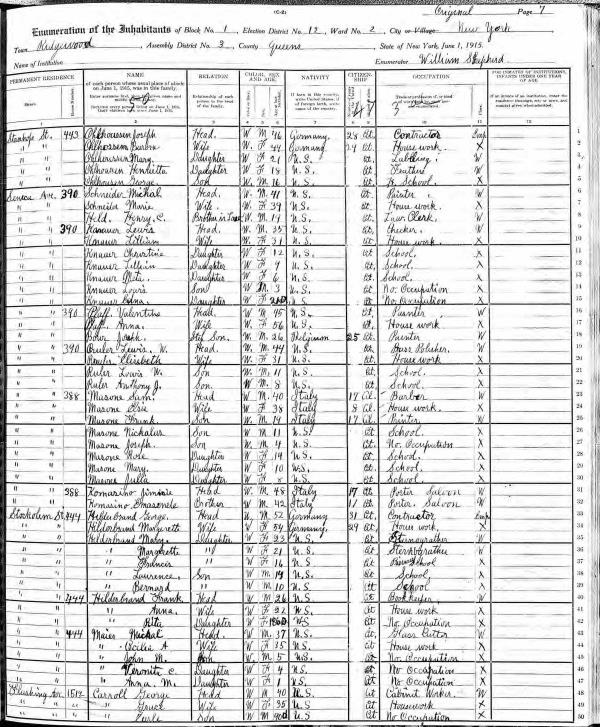 Masone Family 1910 Federal Census New York, Lines 1-7