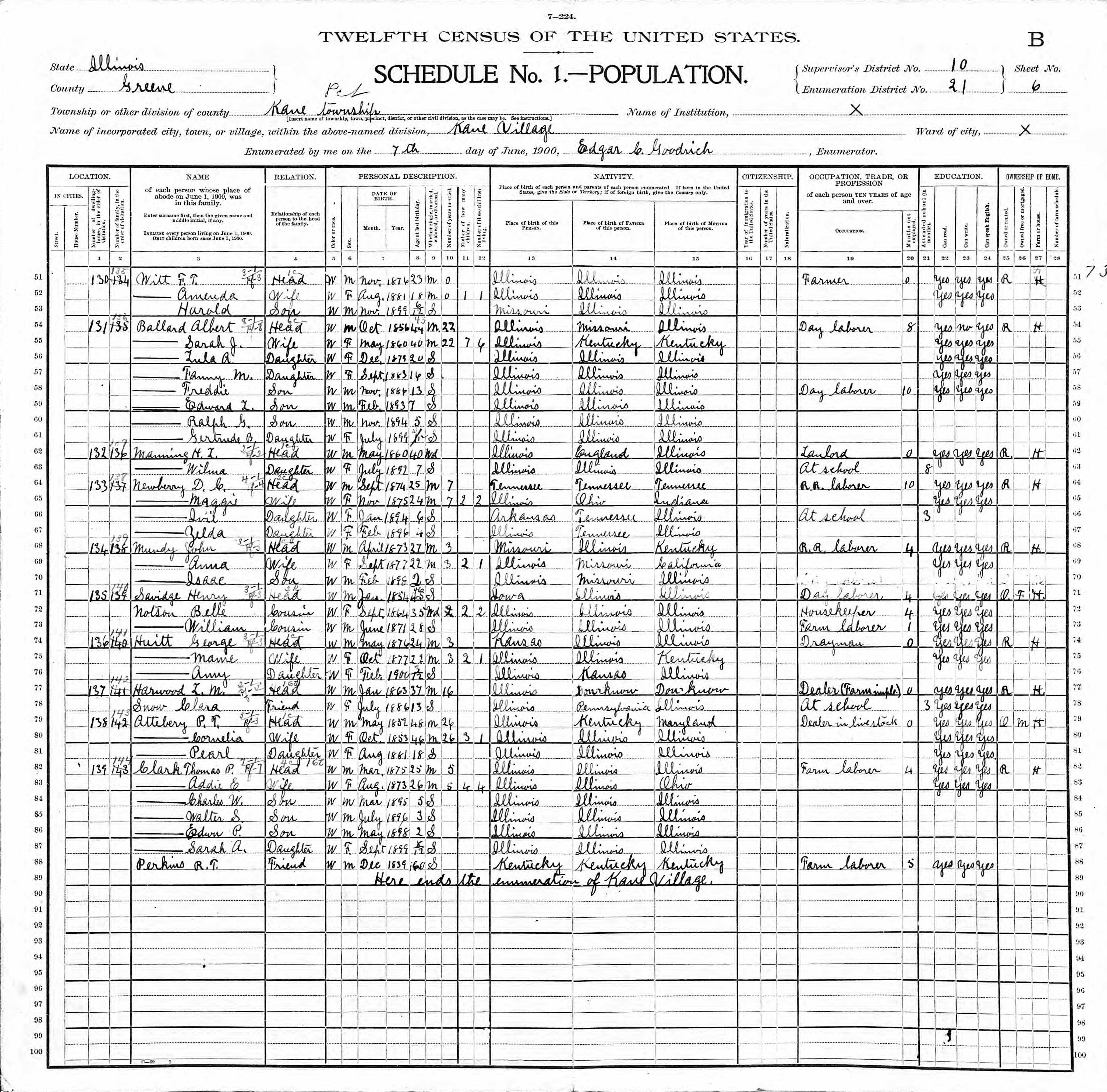 Attebery Family1900 Federal Census Illinois, Lines 79-81