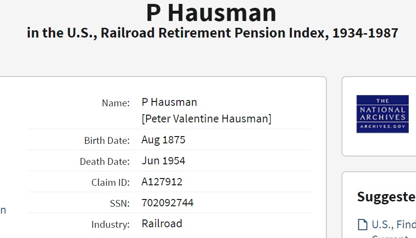 Family: Peter Valentine Hausman Born: August 28, 1875, Died: June 26, 1954