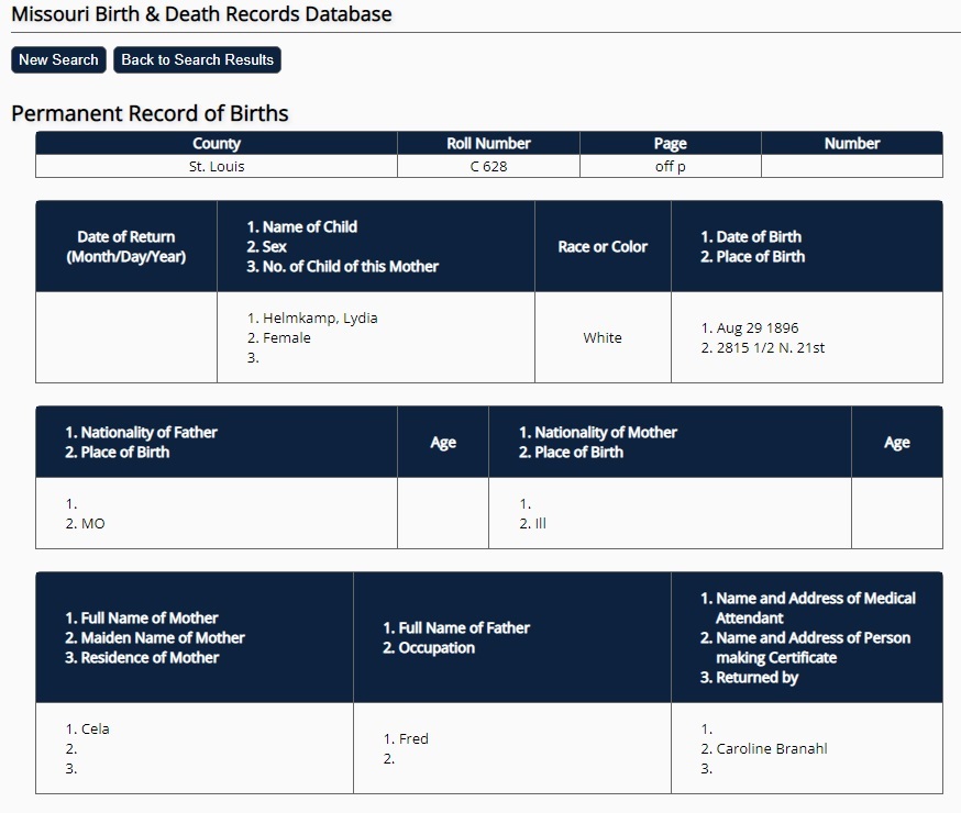 Lydia Marie Helmkamp was born on August 29, 1896 in St. Louis, Missouri, USA. She and
