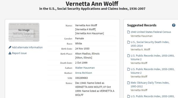 Vernetta Ann Hausman was born on November 24, 1931 in Alton, Madison, Illinois, USA. She and