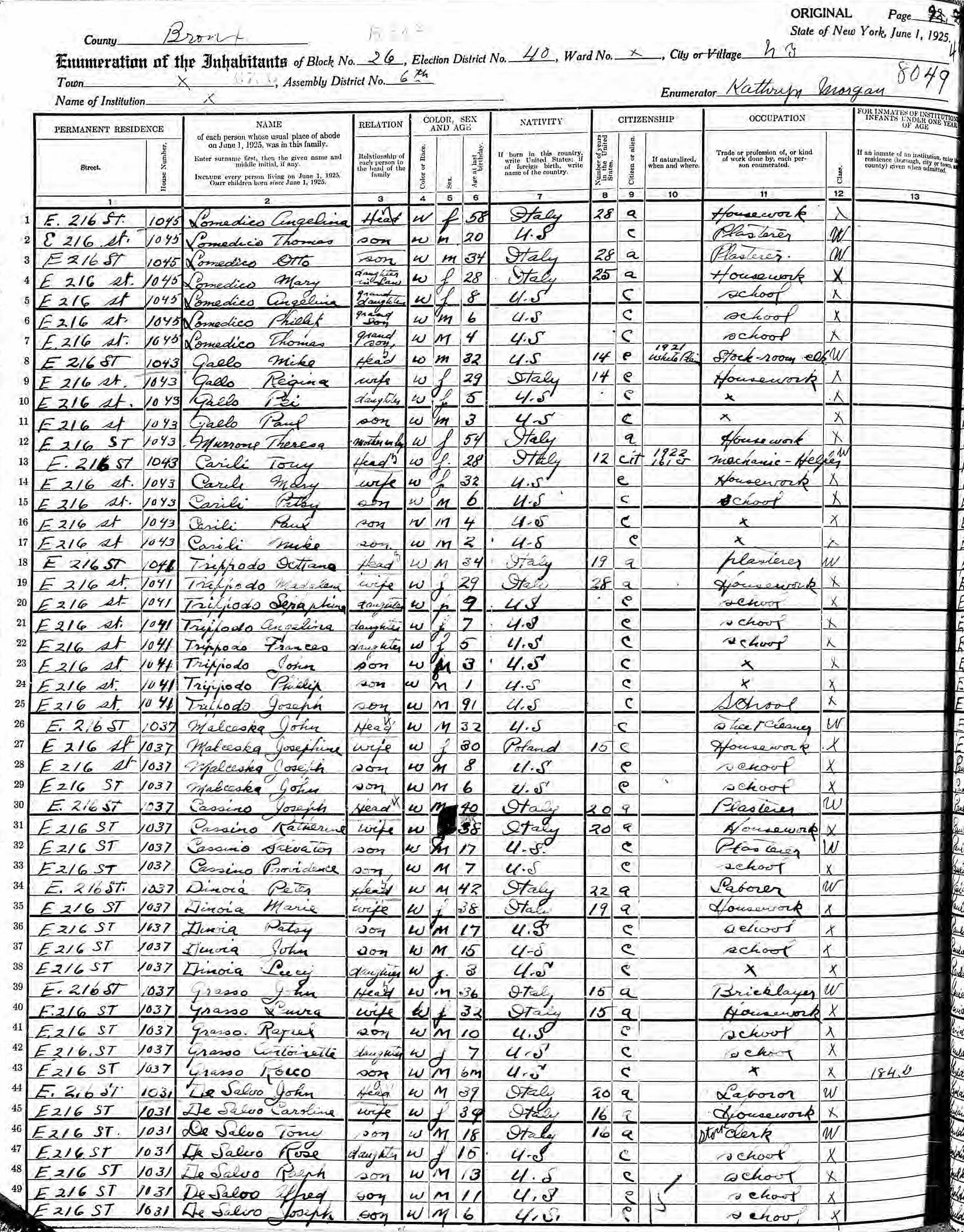 Lomedico Family 1925 State Census New York, Lines 1-7