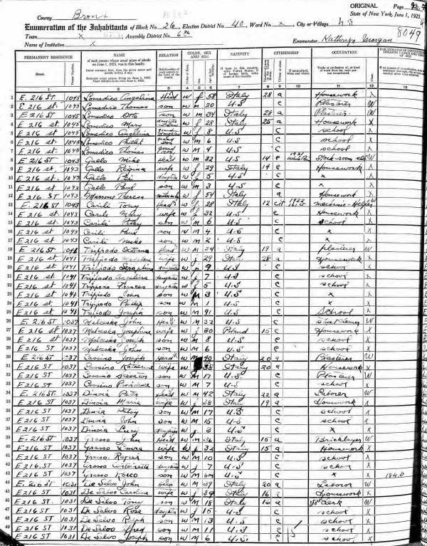 Trippodo Family 1925 State Census New York, Lines 18-25