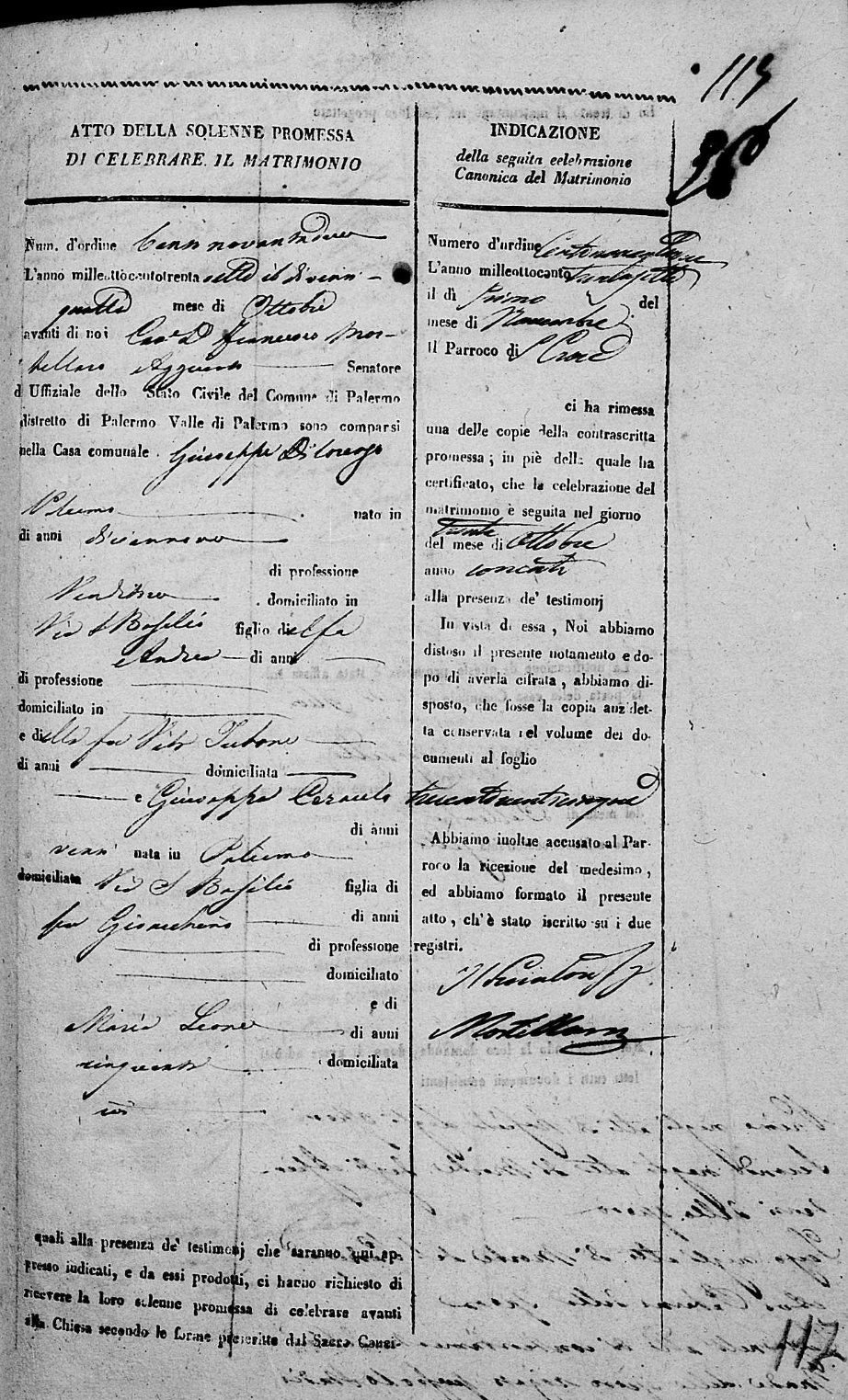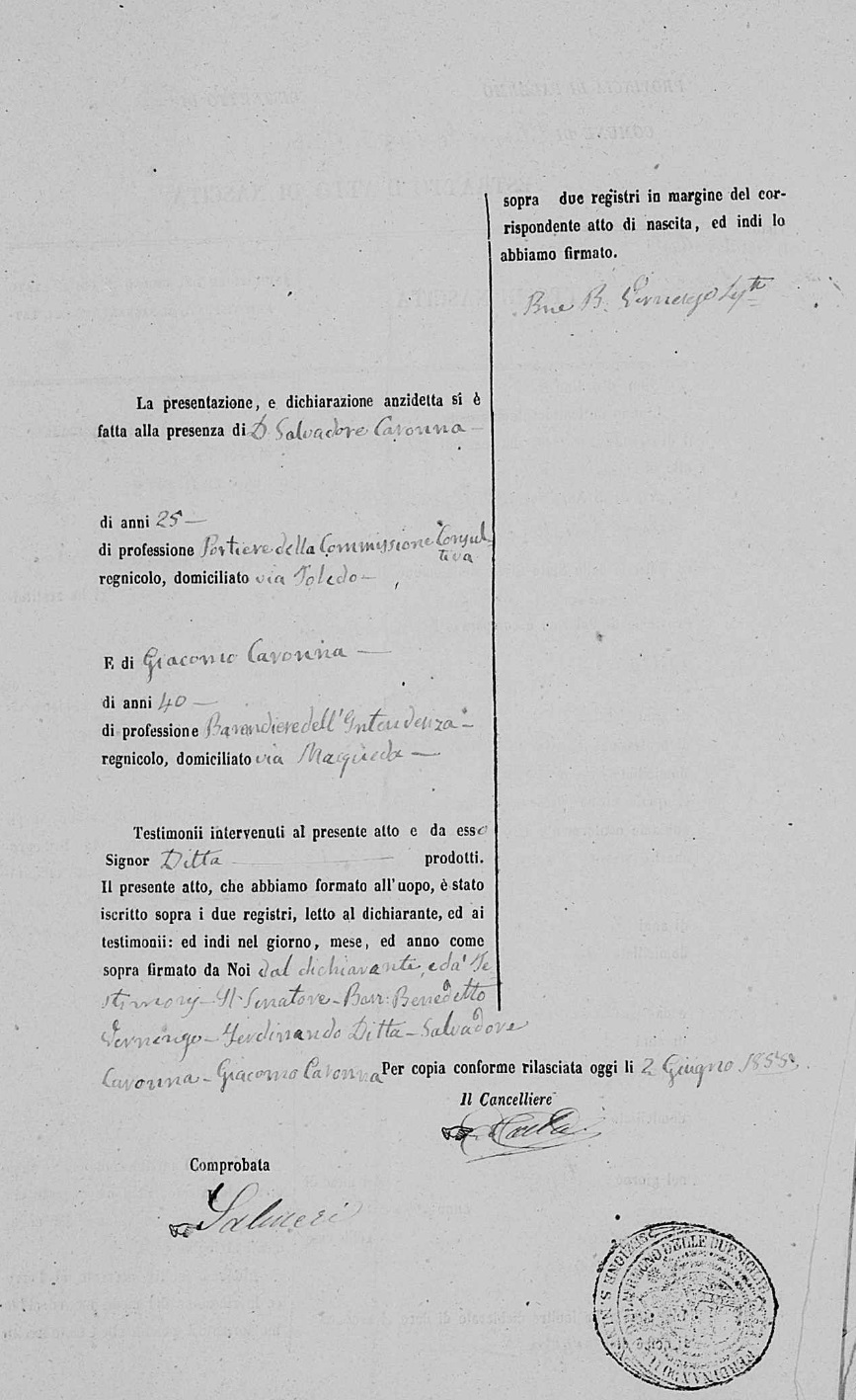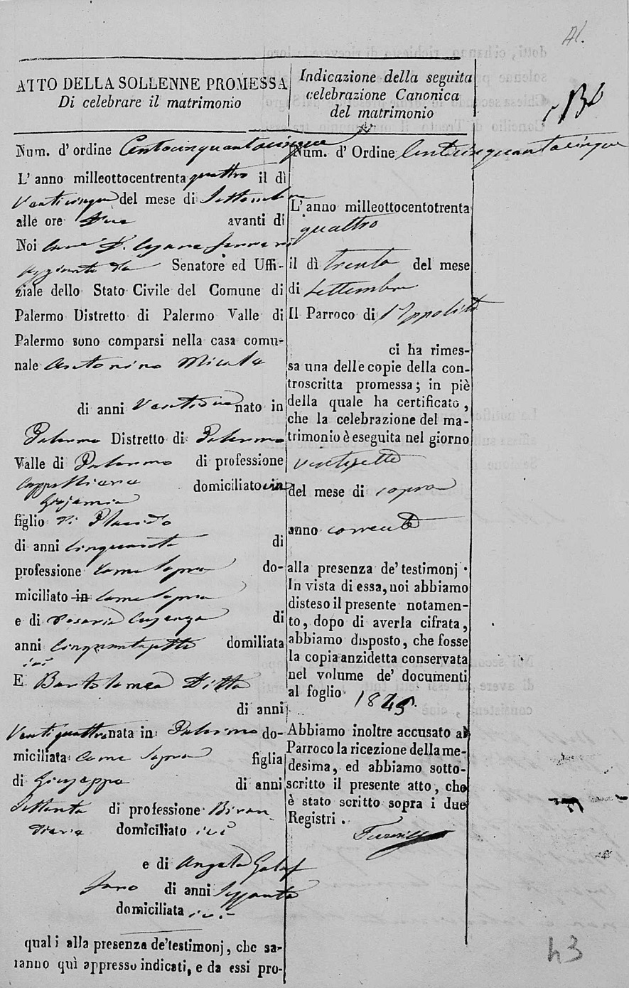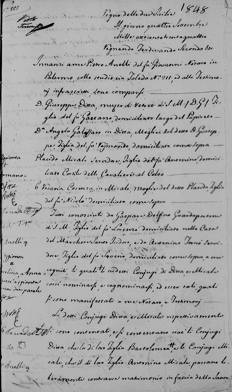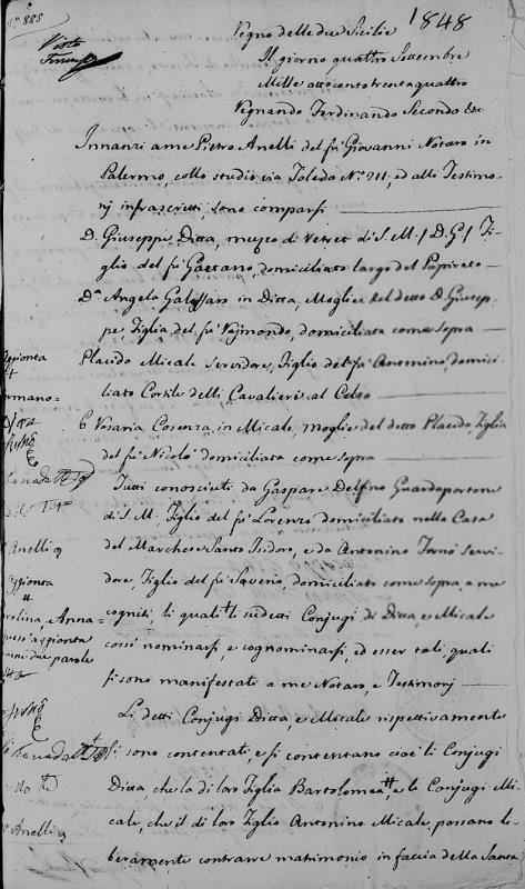 Angela Ditta were married on July 8, 1855 in Sant'Oliva, Palermo, Sicilia, Italy. He died.