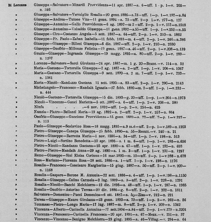 Luigi Di Lorenzo were married on July 12, 1847 in Santa Ninfa, Palermo, Sicilia, Italy. She died.