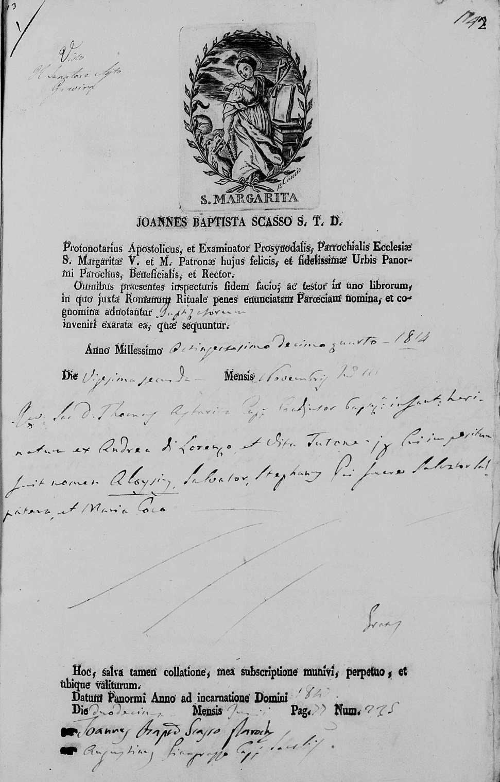 Giovanni Casisa was born in 1778 in Palermo, Sicilia, Italy. He and