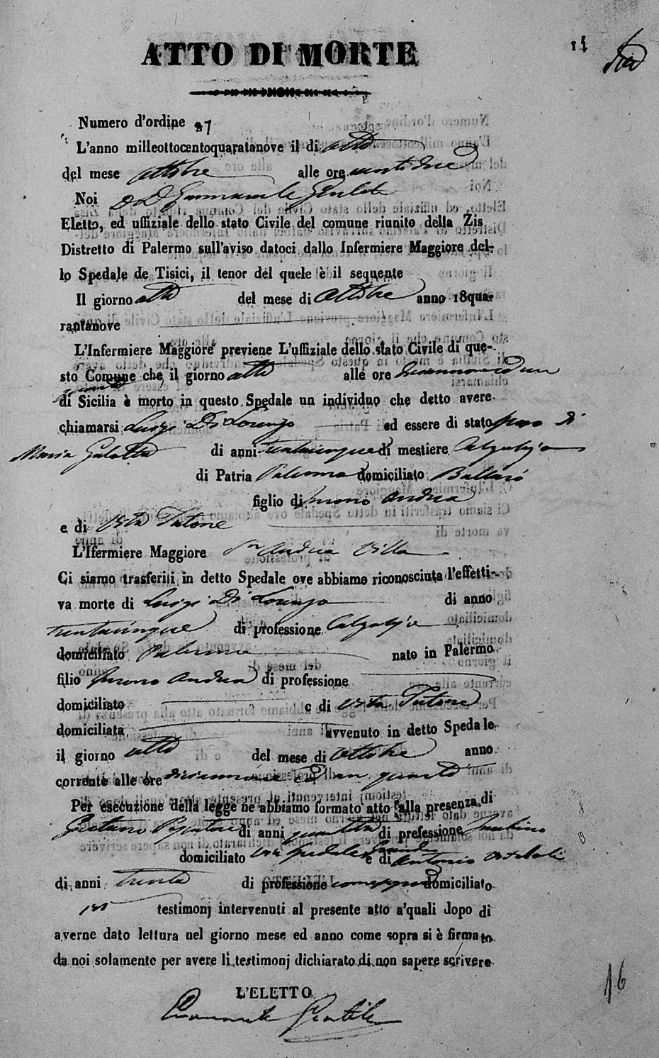 Luigi Di Lorenzo was born on November 22, 1814 in Palermo, Sicilia, Italy. He and