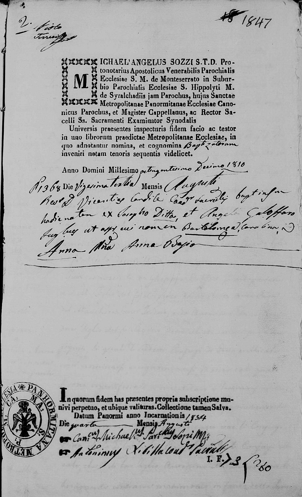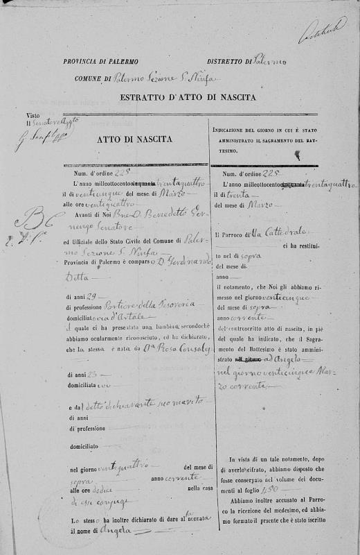 Bartolomea Ditta was born on August 23, 1810 in Palermo, Sicilia, Italy. She and