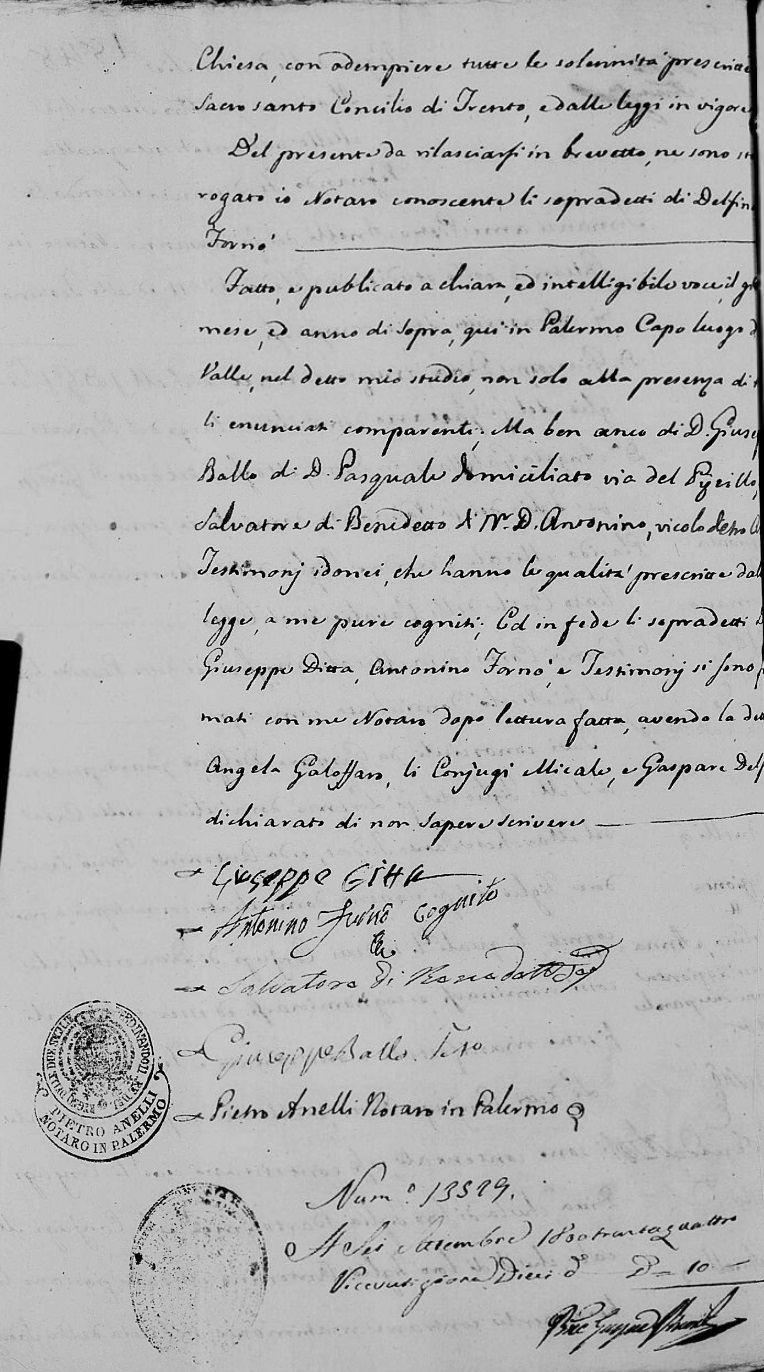 Ferdinando Ditta were married on January 6, 1833 in Santa Ninfa, Palermo, Sicilia, Italy. She died.