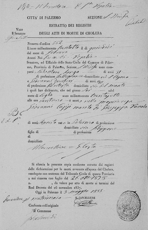 Gandolfo Di Lorenzo were married on March 31, 1833 in Santa Cristina, Palermo, Sicilia, Italy. She died.