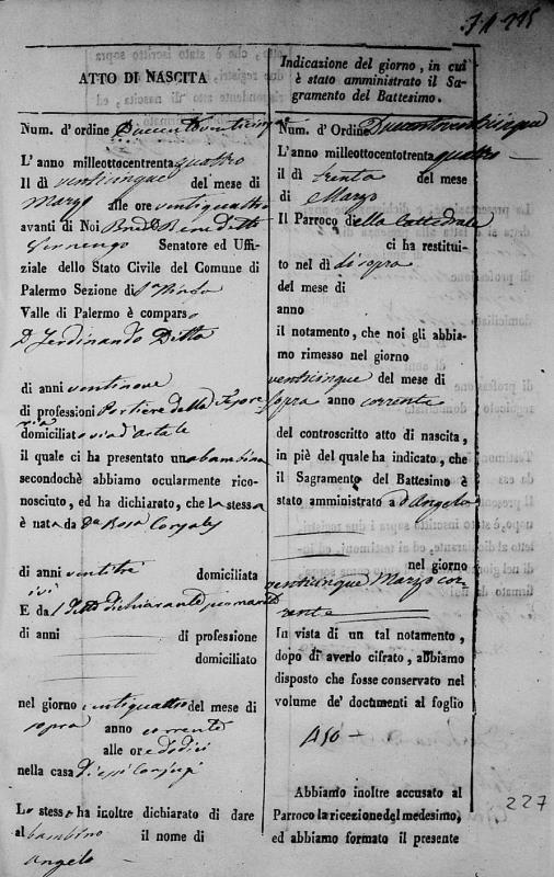 Andrea Di Lorenzo was born in 1787 in Palermo, Sicilia, Italy. He and