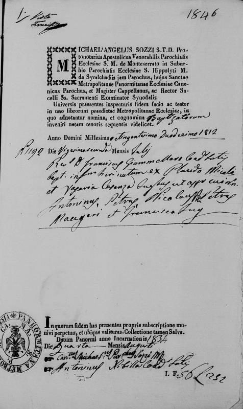 Antonino Micale was born on July 22, 1812 in Palermo, Sicilia, Italy. He and