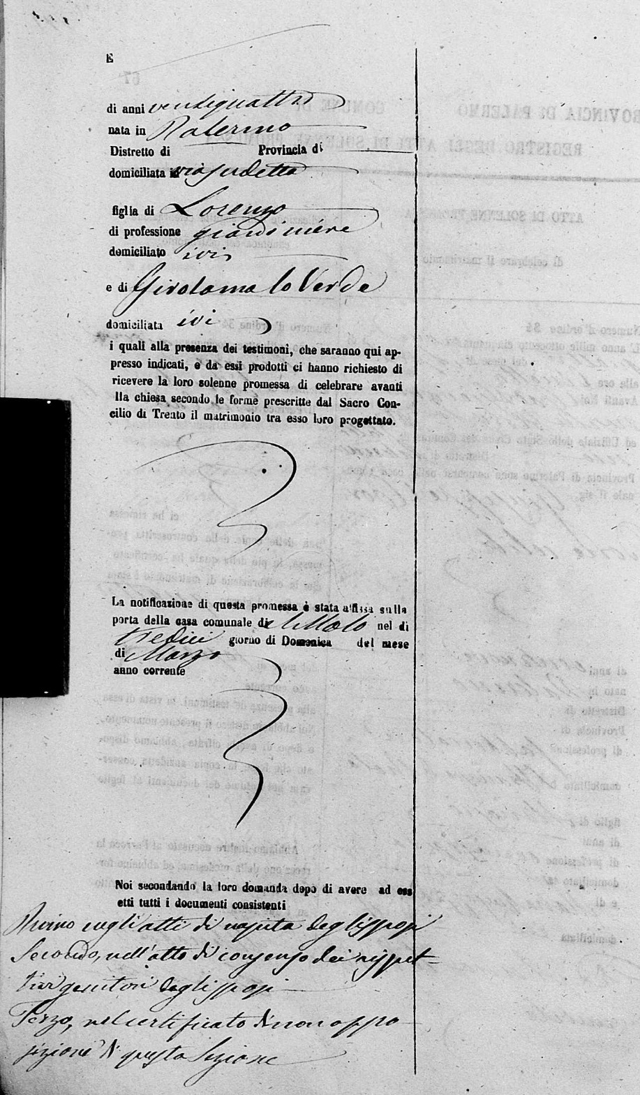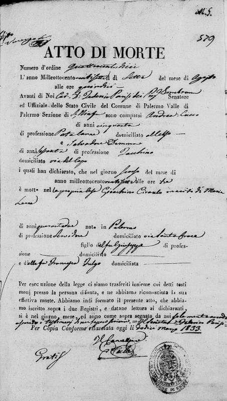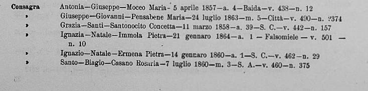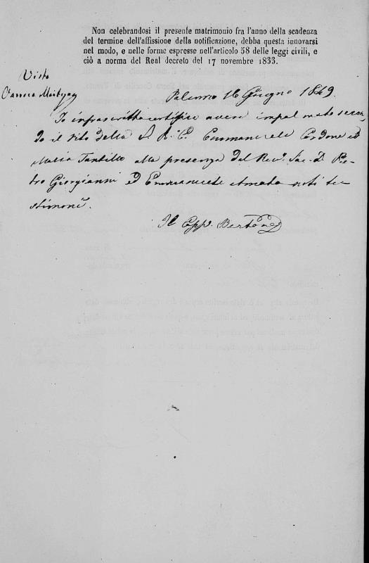 Maria Tantillo were married on June 18, 1849 in Santa Cristina, Palermo, Sicilia, Italy. He died.