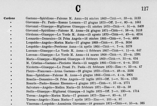 Giuseppe Cordone were married on April 5, 1859 in Molo, Palermo, Sicilia, Italy. She died.