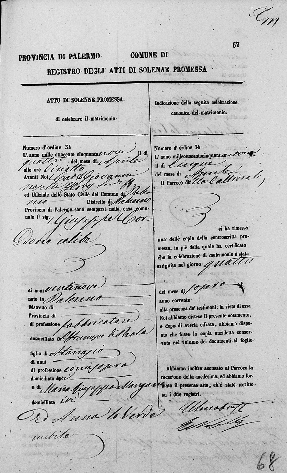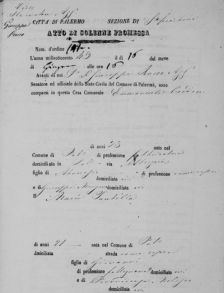 Emannuele Cordone were married on June 18, 1849 in Santa Cristina, Palermo, Sicilia, Italy. She died.