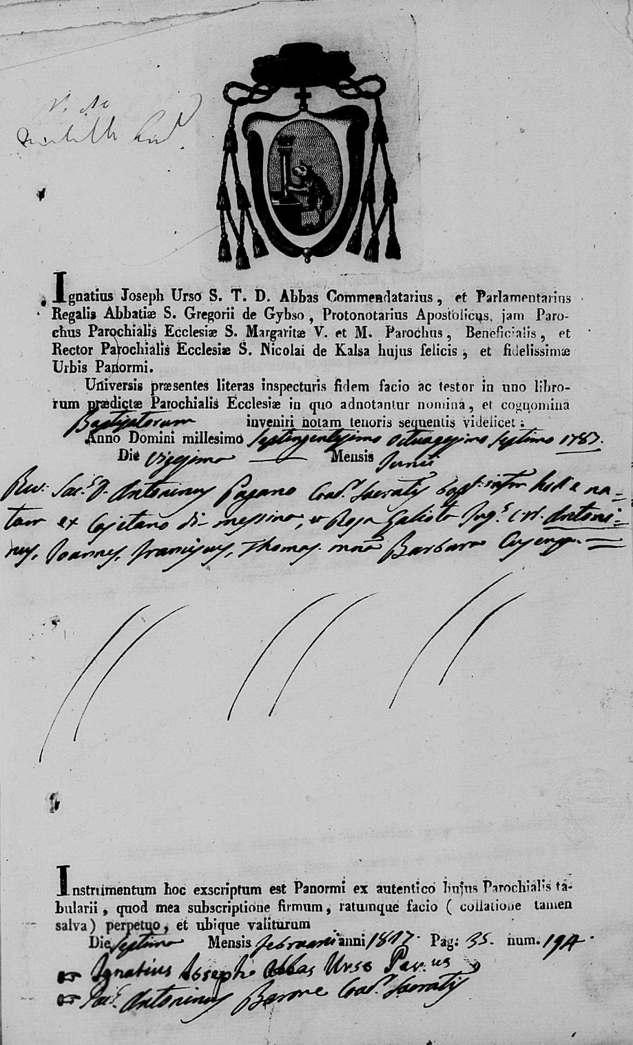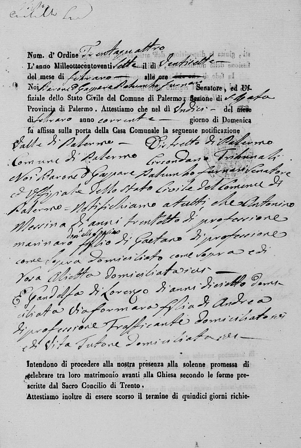 Antonino Messina was born on June 20, 1783 in Palermo, Sicilia, Italy. He and