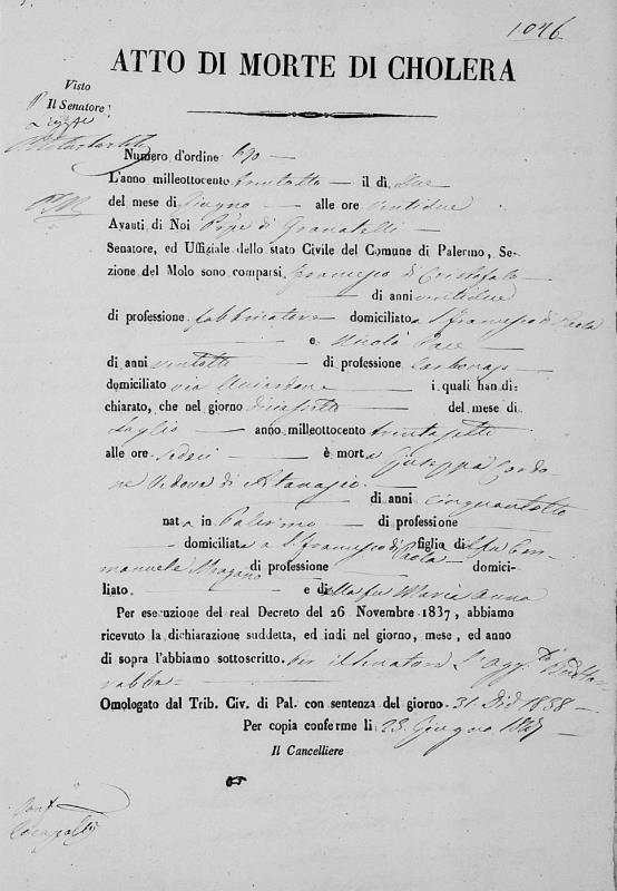 Emannuele Cordone was born on November 4, 1825 in Molo, Palermo, Sicilia, Italy. He and