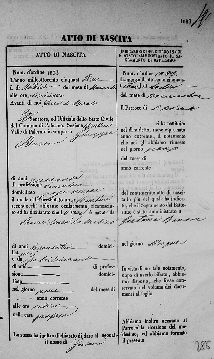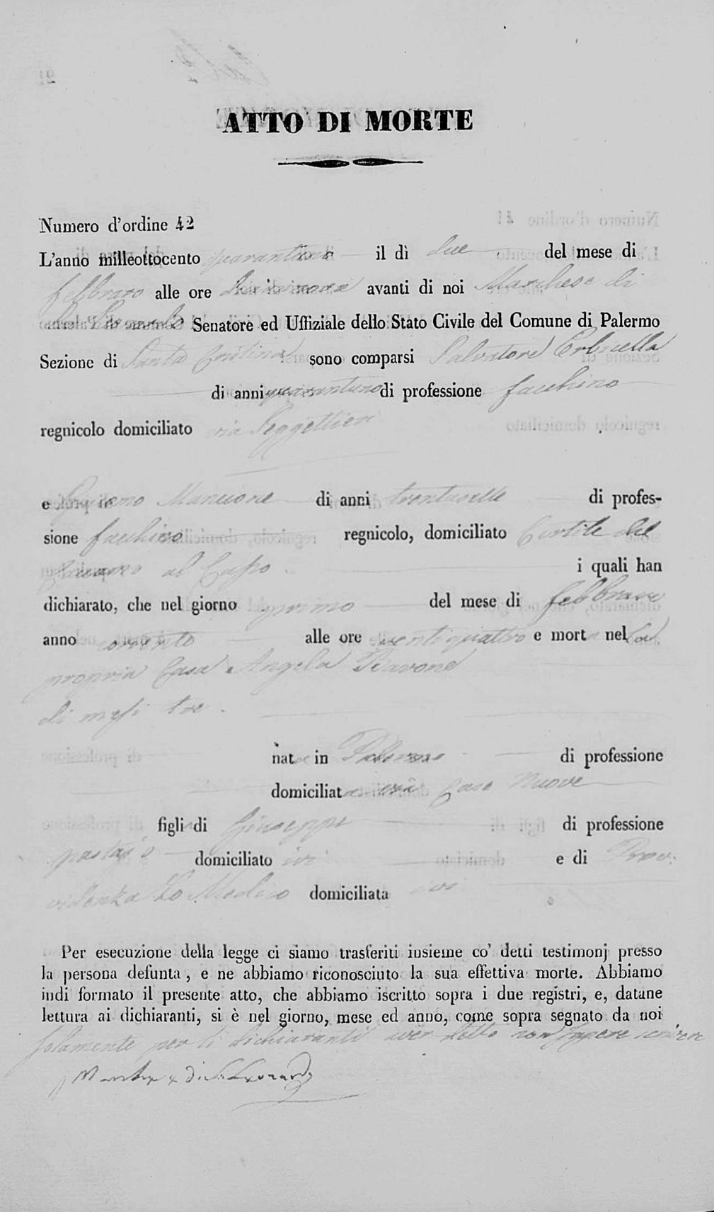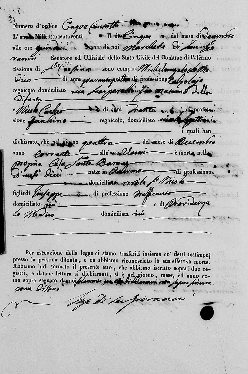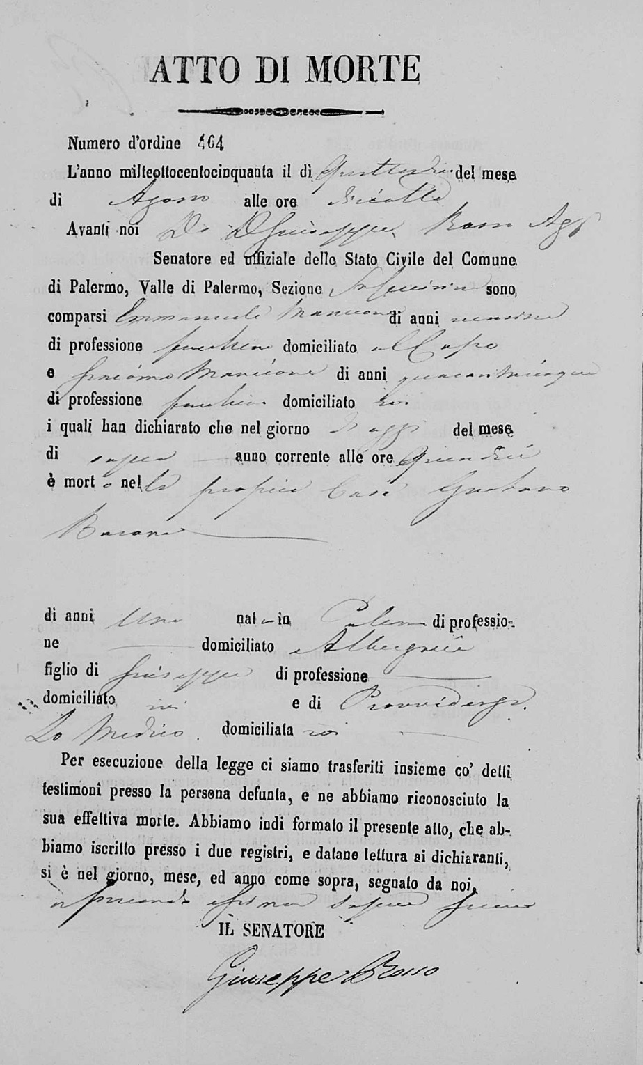 Rosalia Barone were married on June 13, 1823 in Santa Cristina, Palermo, Sicilia, Italy. He died.