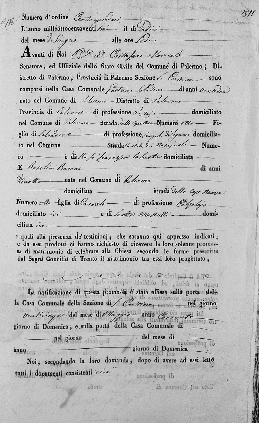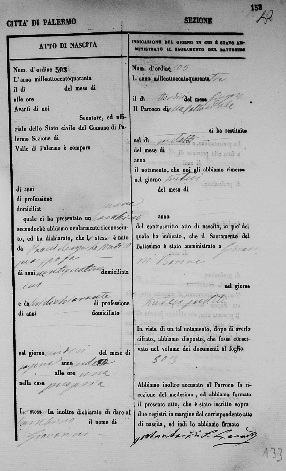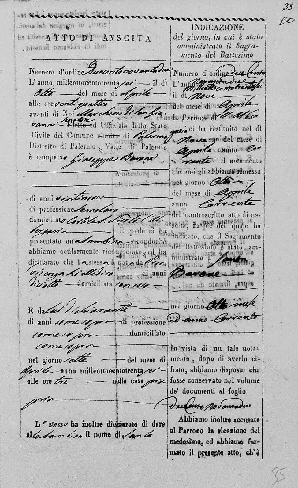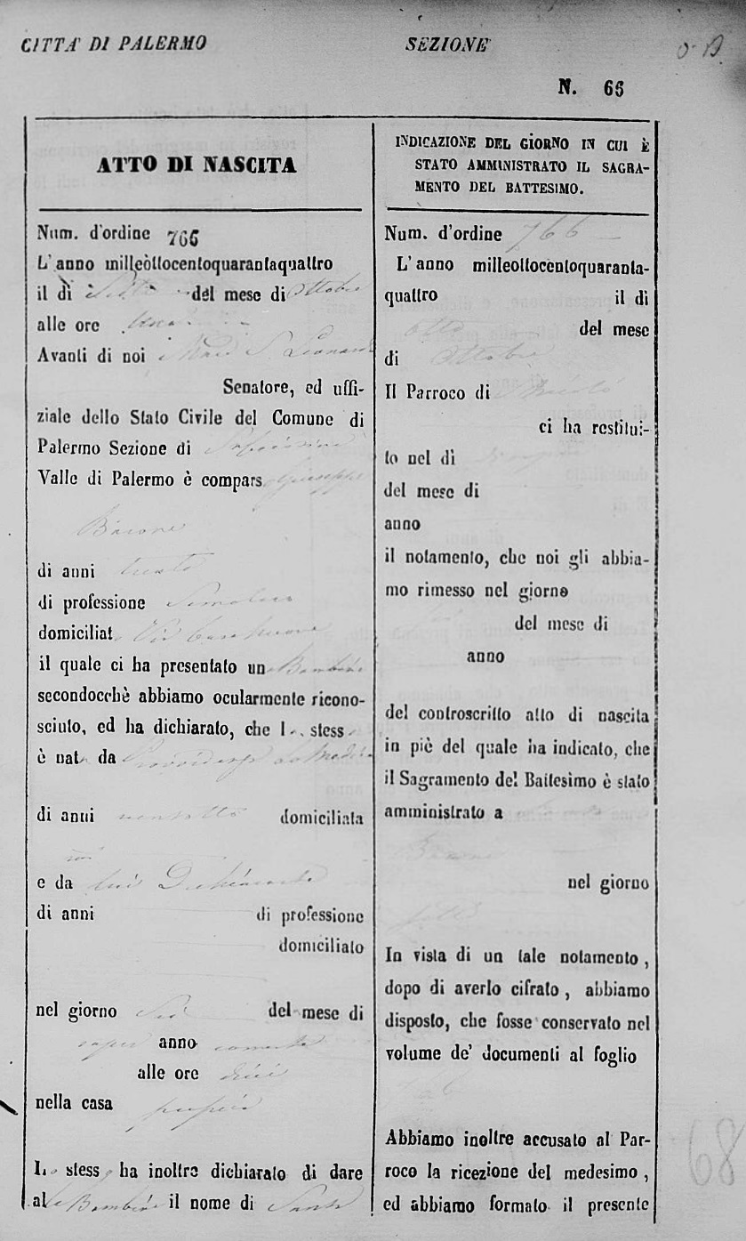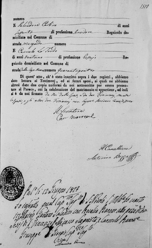 Rosalia Barone were married on June 13, 1823 in Santa Cristina, Palermo, Sicilia, Italy. He died.
