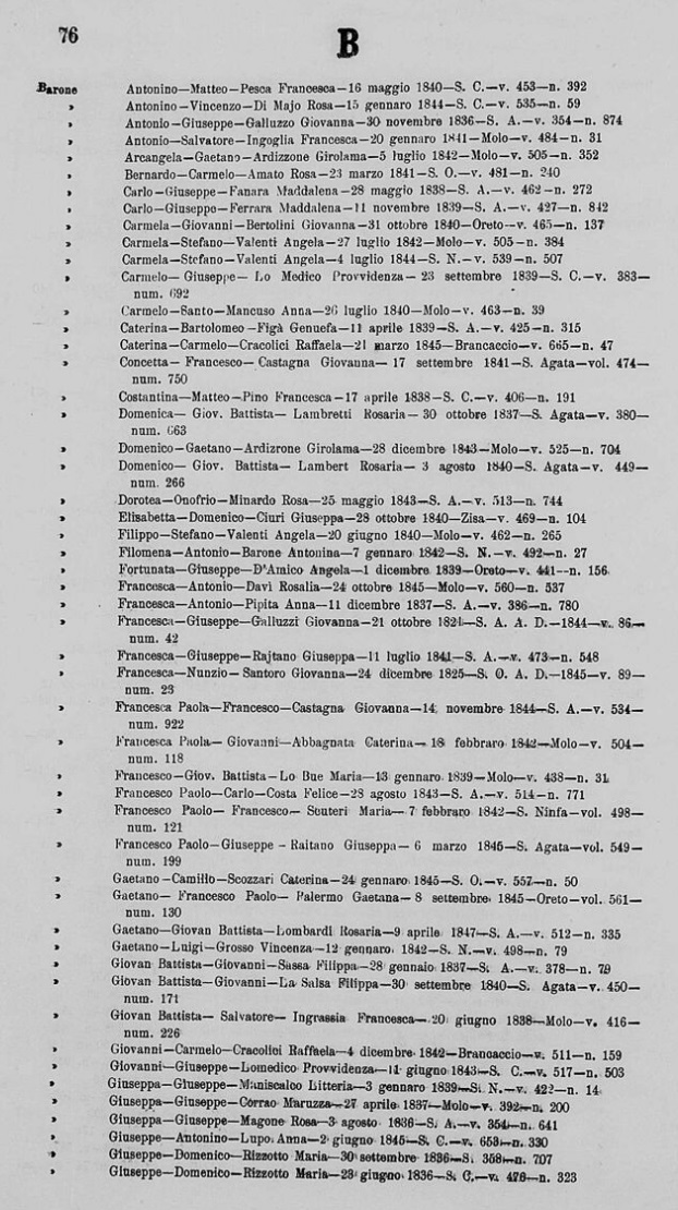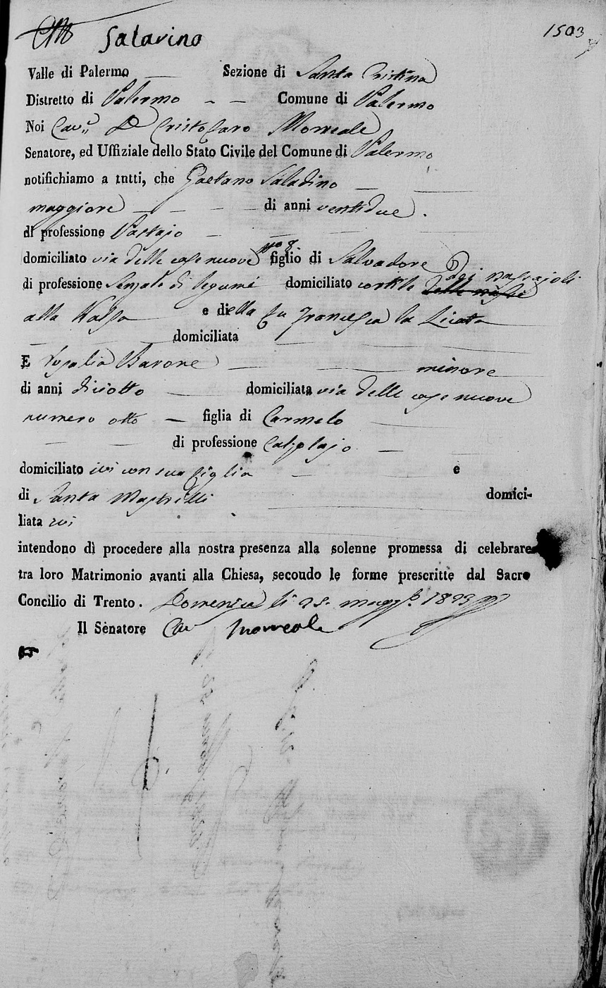 Santa Barone were married on October 30, 1872 in Palermo, Sicilia, Italy. He died.