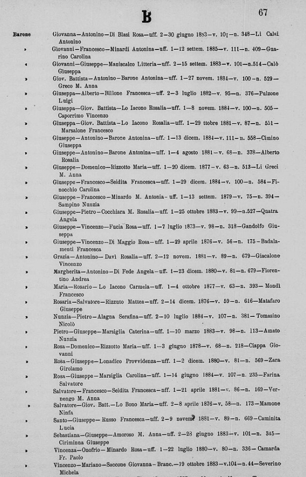Giovanni Barone was born on June 5, 1855 in Santa Cristina, Palermo, Sicilia, Italy. He and