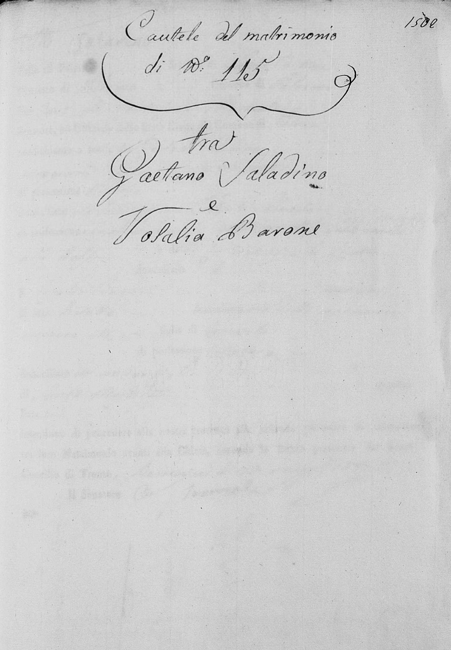 Gaetano Saladino were married on June 13, 1823 in Santa Cristina, Palermo, Sicilia, Italy. She died on July 4, 1837, at age 31, in Santa Cristina, Palermo, Sicilia, Italy.