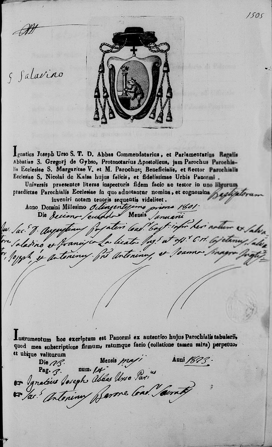 Gaetano Saladino was born on January 12, 1801 in Palermo, Sicilia, Italy. He and