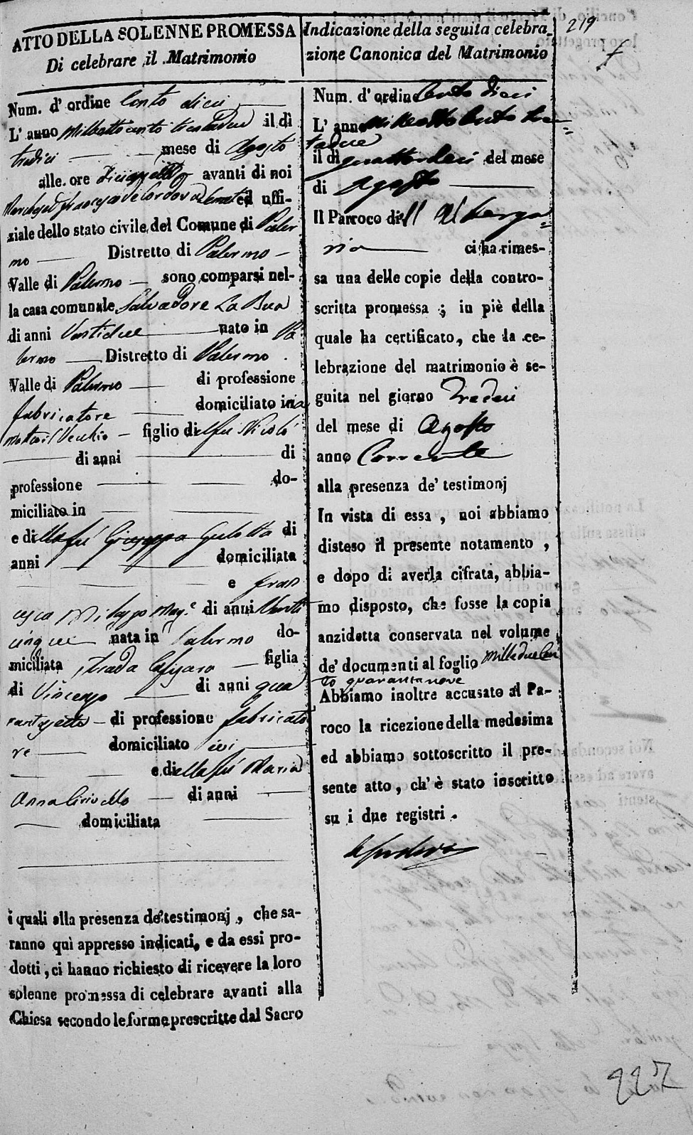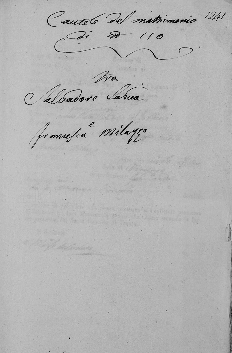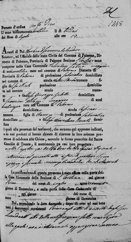 Francesca Milazzo were married on August 14, 1832 in Santa Cristina, Palermo, Sicilia, Italy. He died.