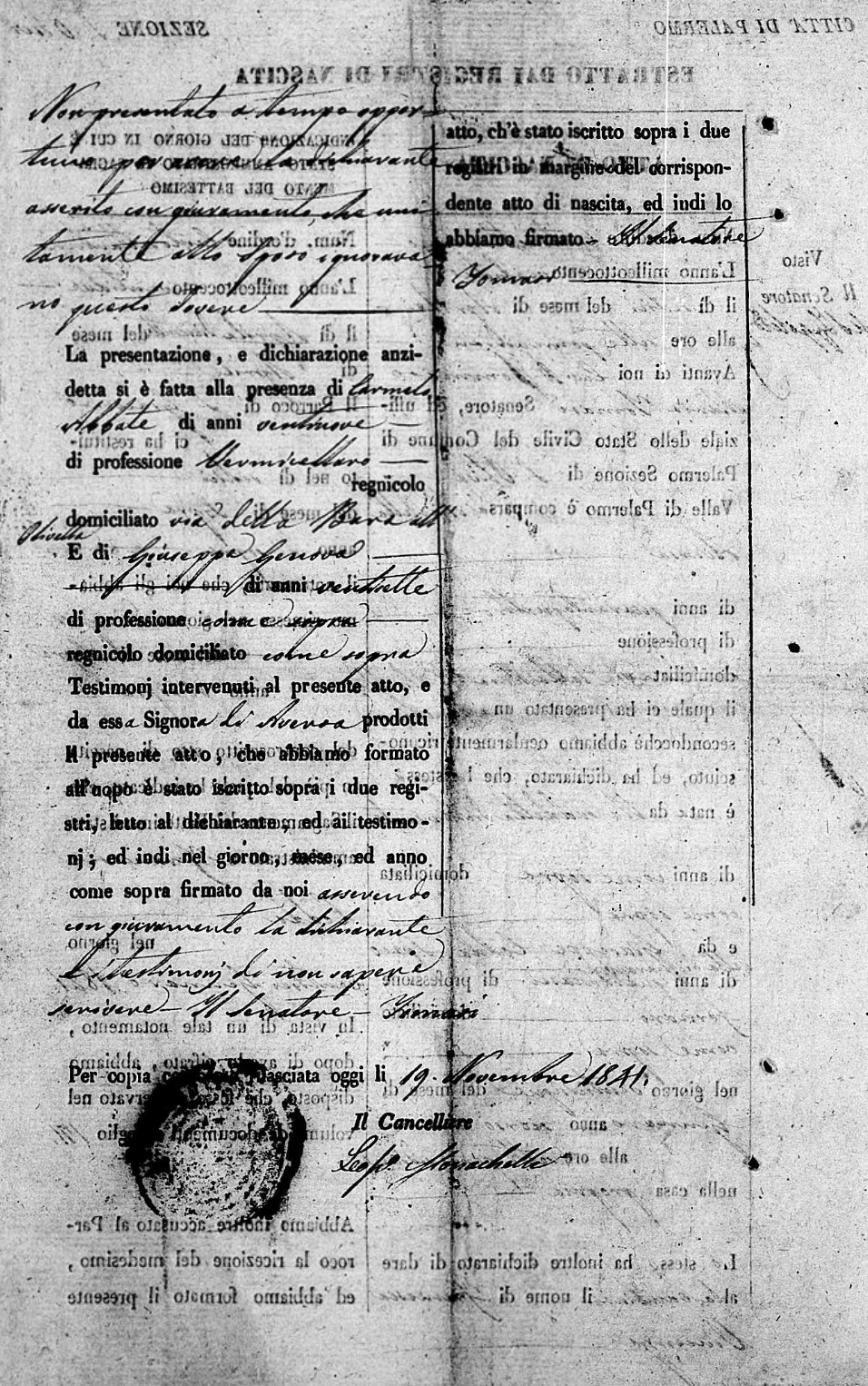 Rosario Lo Cascio was born on July 14, 1818 in Palermo, Sicilia, Italy. He and
