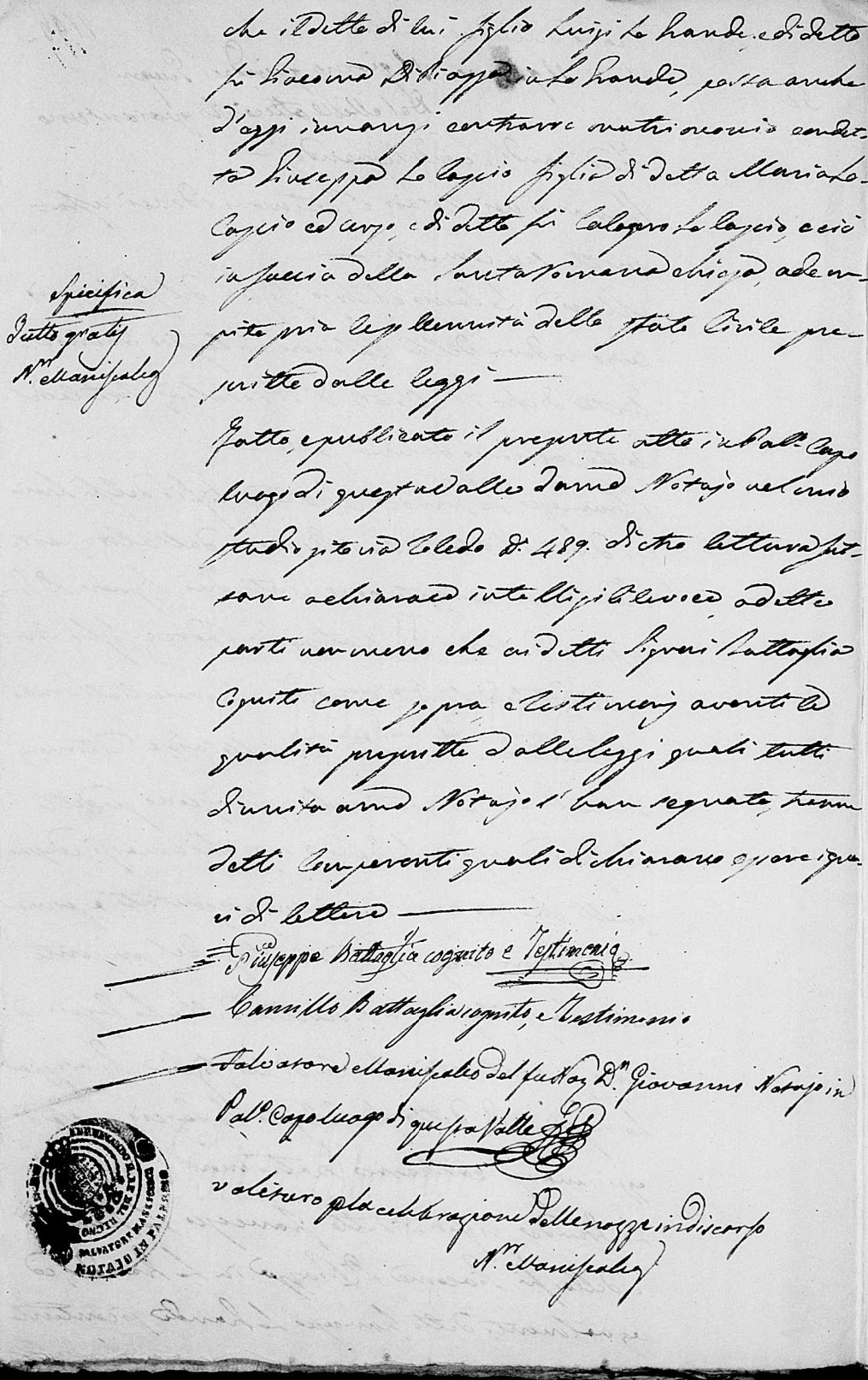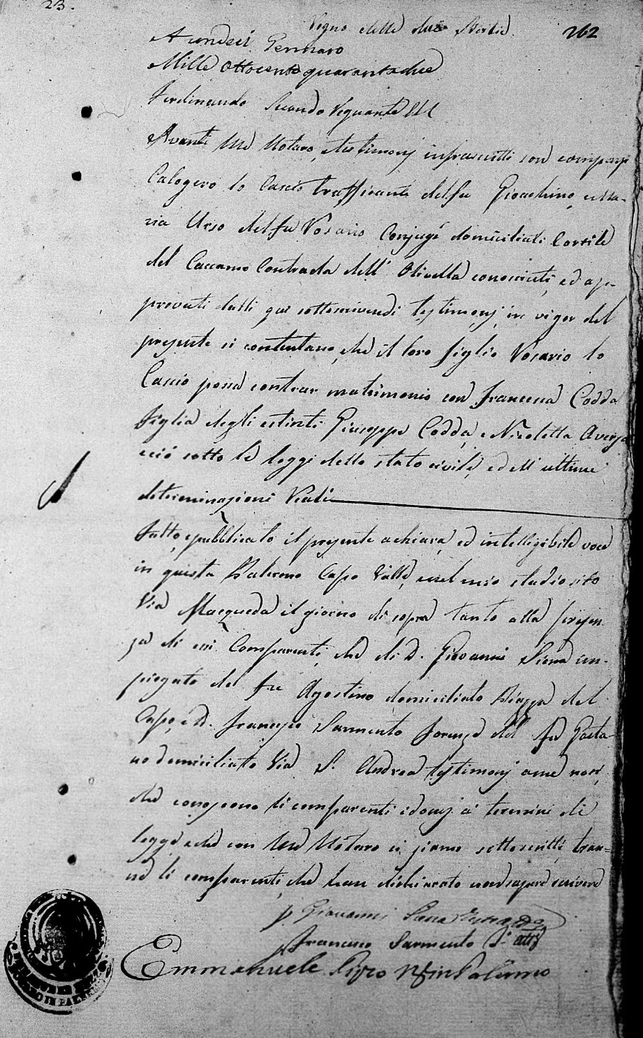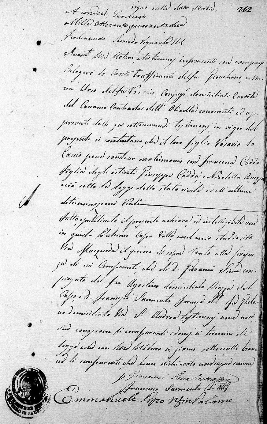 Rosario Lo Cascio were married on February 7, 1842 in Molo, Palermo, Sicilia, Italy. She died.